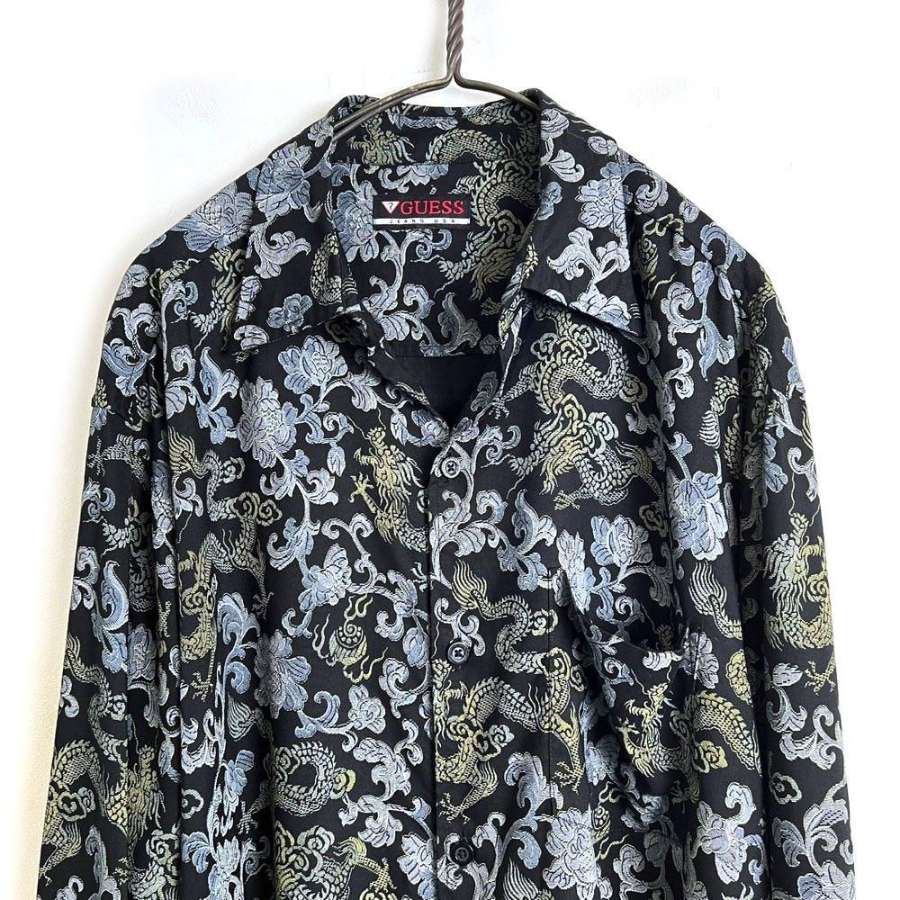 【GUESS】ヴィンテージ ボタニカル&ドラゴン パターン レーヨンシャツ【1990's-】 Vintage Dragon & Botanical Print Shirt