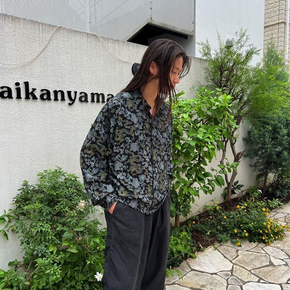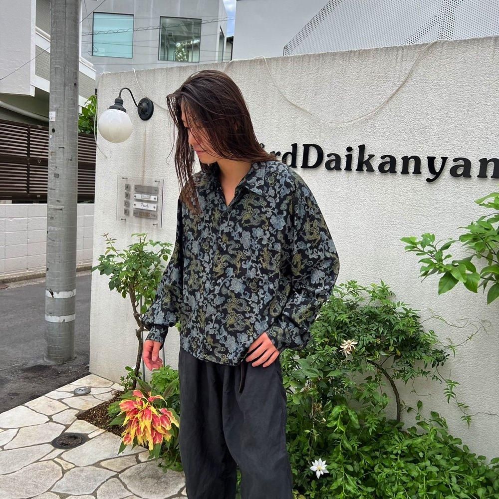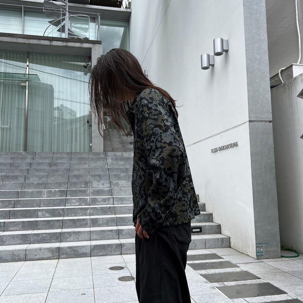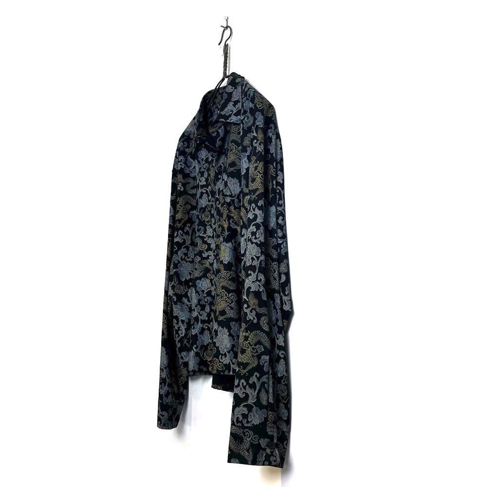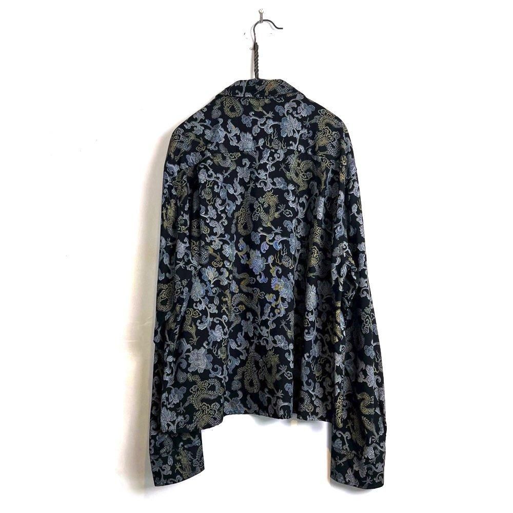 織り柄のように見えるドラゴン&ボタニカルプリントが雰囲気の良い90年代のレーヨンシャツ