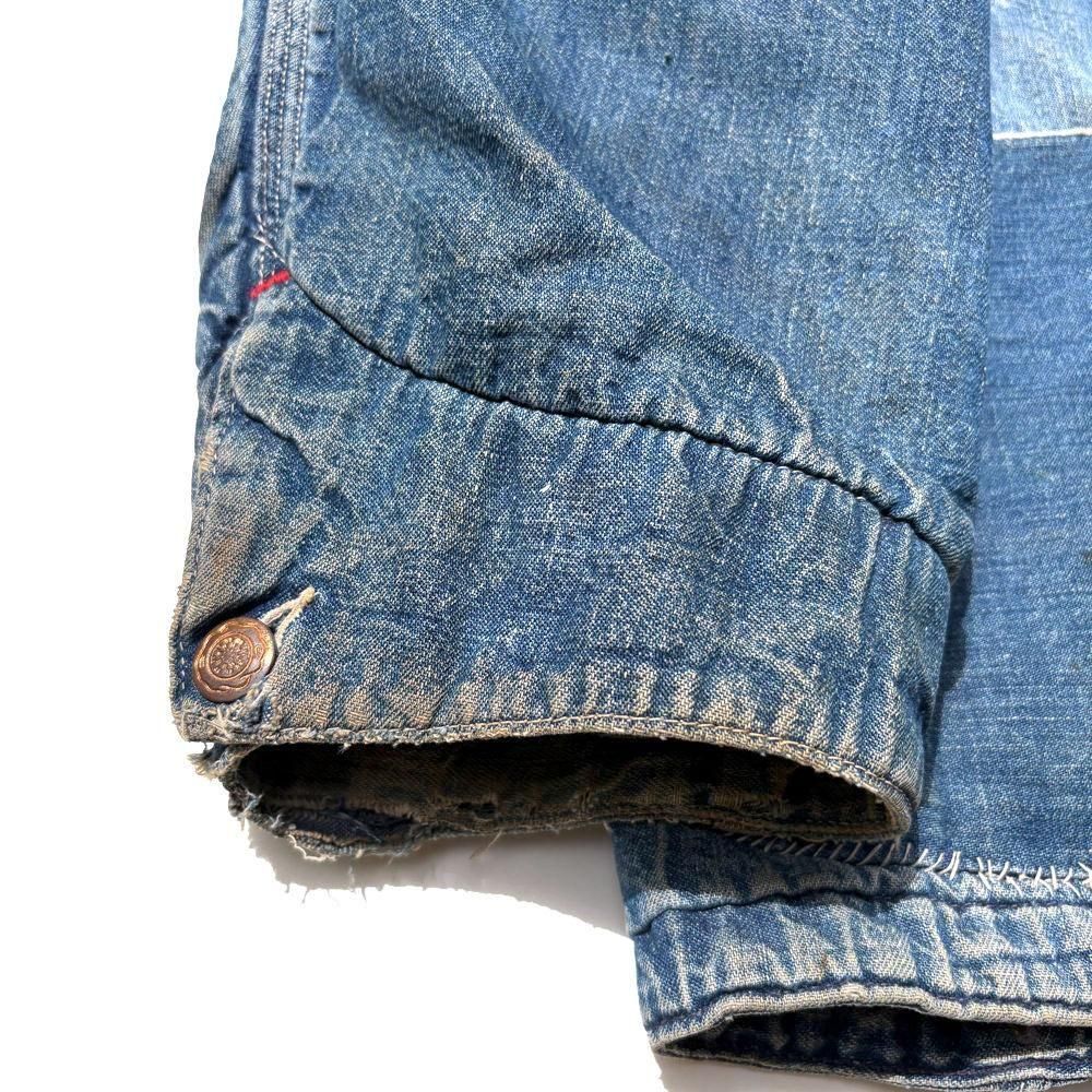独特のアタリ感やムラ感、ヴィンテージならではの本物のインディゴの美しい縦落ちが感じられ、アンティークならではの味のある補修跡や経年によるエイジングが唯一無二の存在感を放ちます。