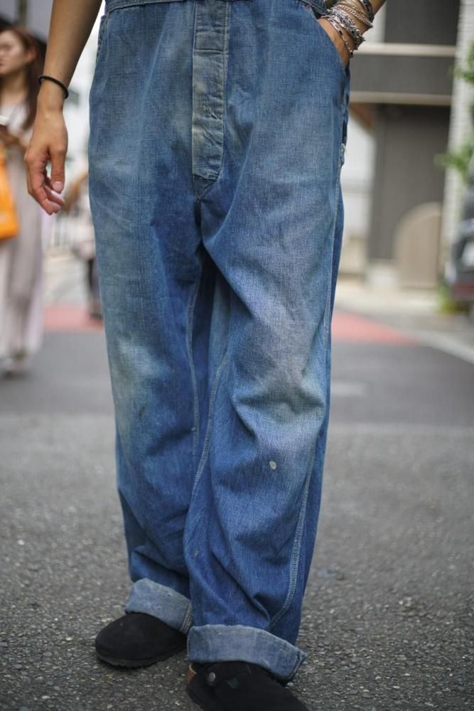 リアルなデニムのエイジング、経年で生地も柔らかくなっており軽やかな質感、色味の残ったインディゴにアタリが見えるヴィンテージならではのデニム生地、美しい縦落ちが現行のものでは表現できない唯一無二の存在感を醸し出します。
