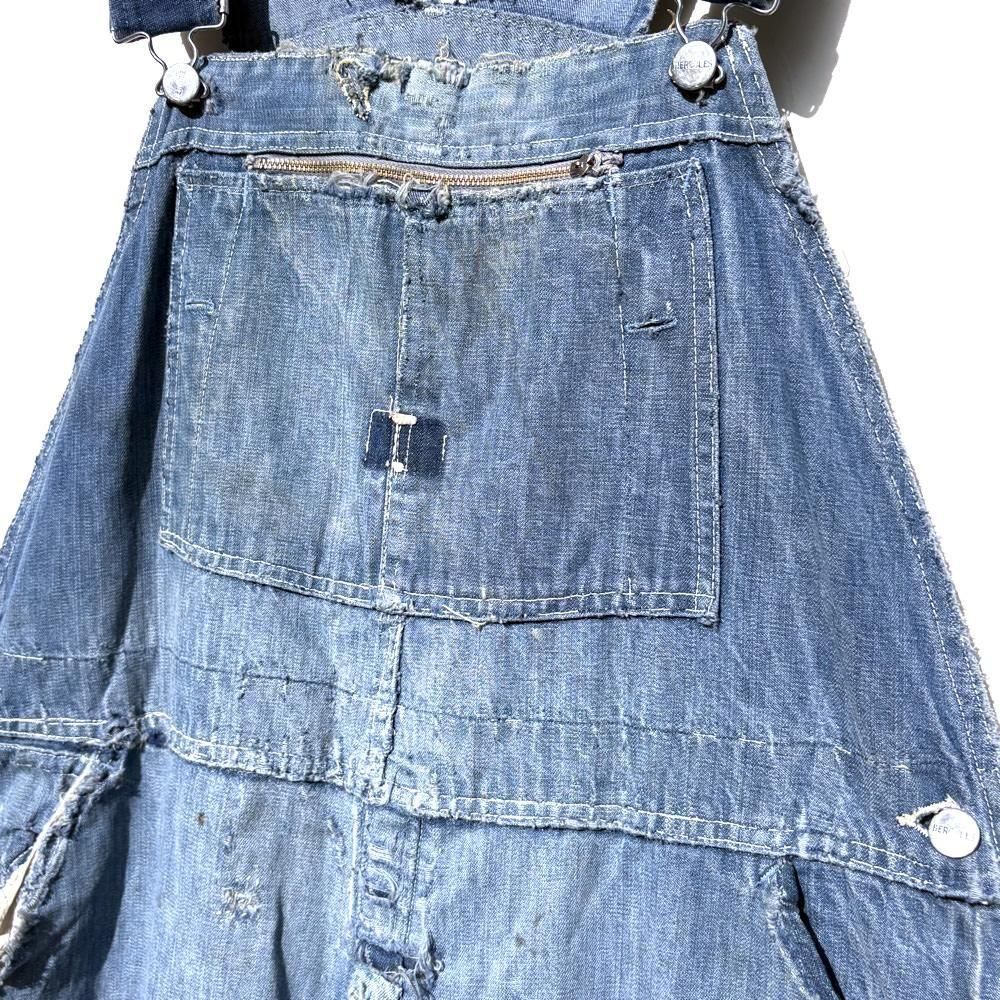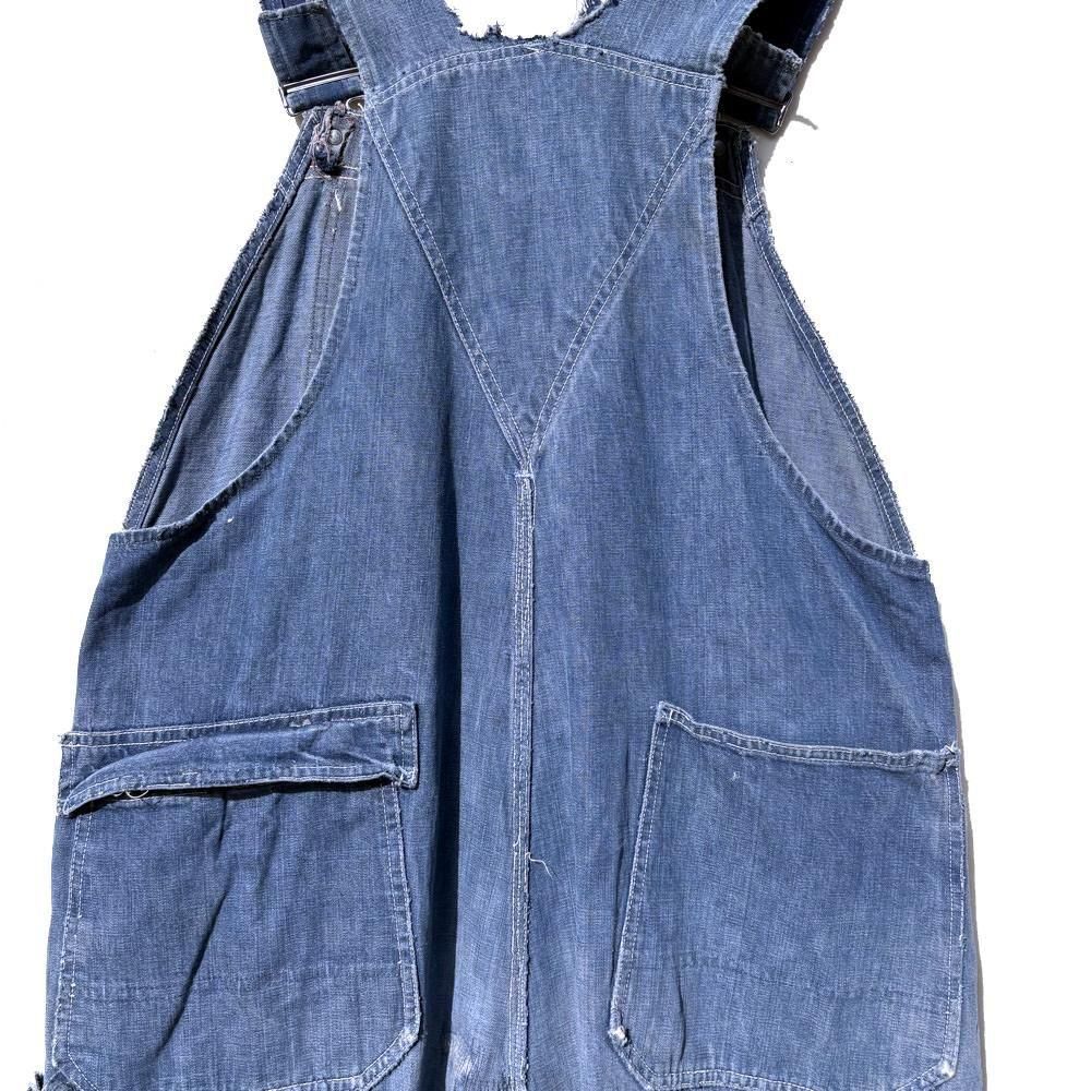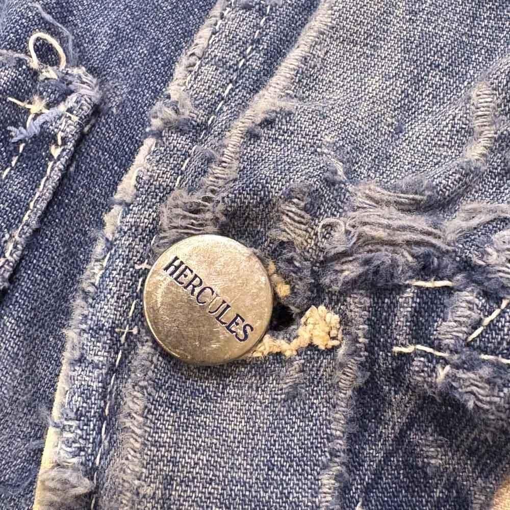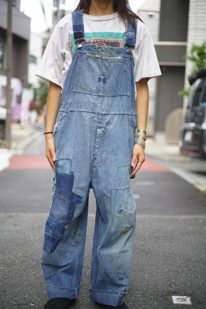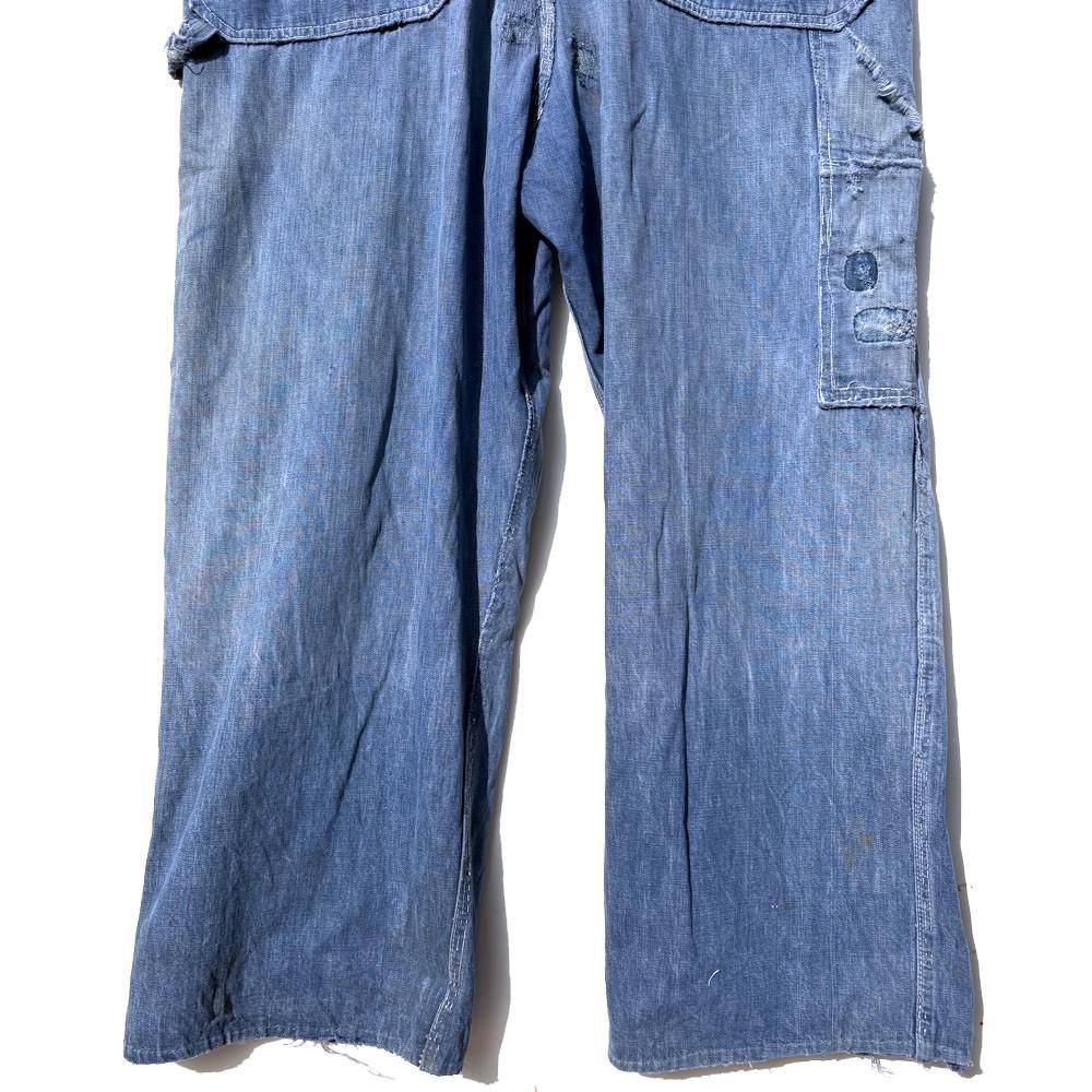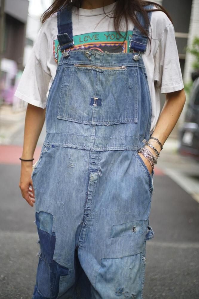 経年で生地も柔らかくなっており軽やかな質感、色味の残ったインディゴに程よいアタリが見えるヴィンテージならではのデニム生地、ダメージやリペア跡がある種アーティスティックな表情で唯一無二の存在感放つスペシャルピース。