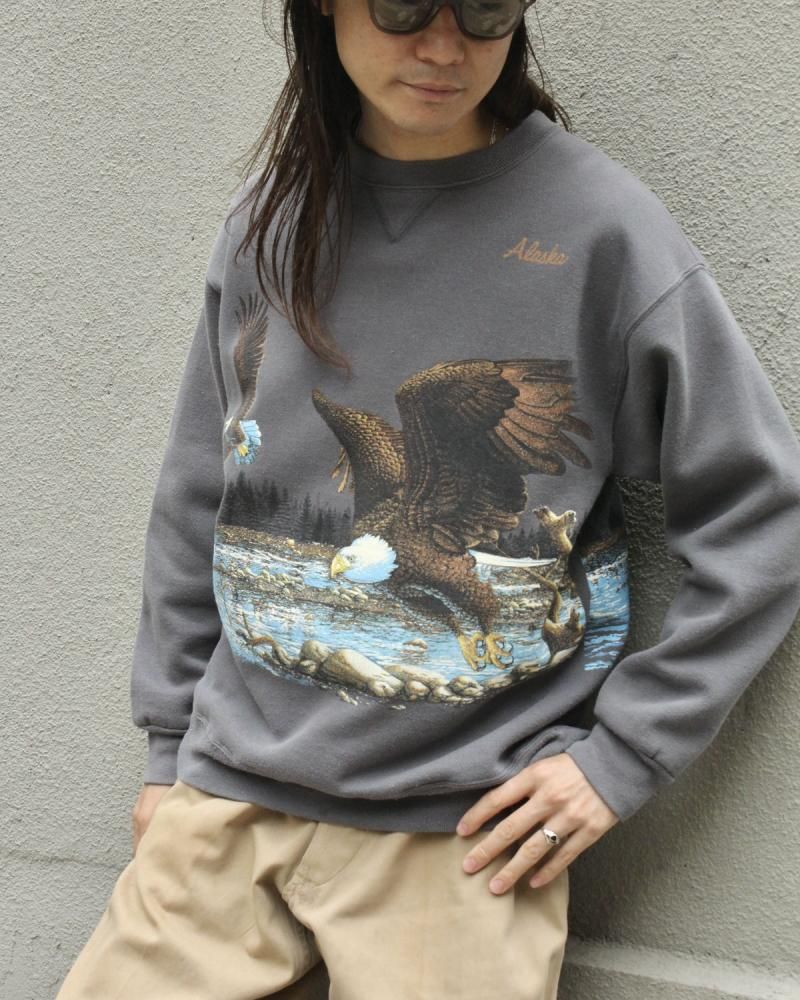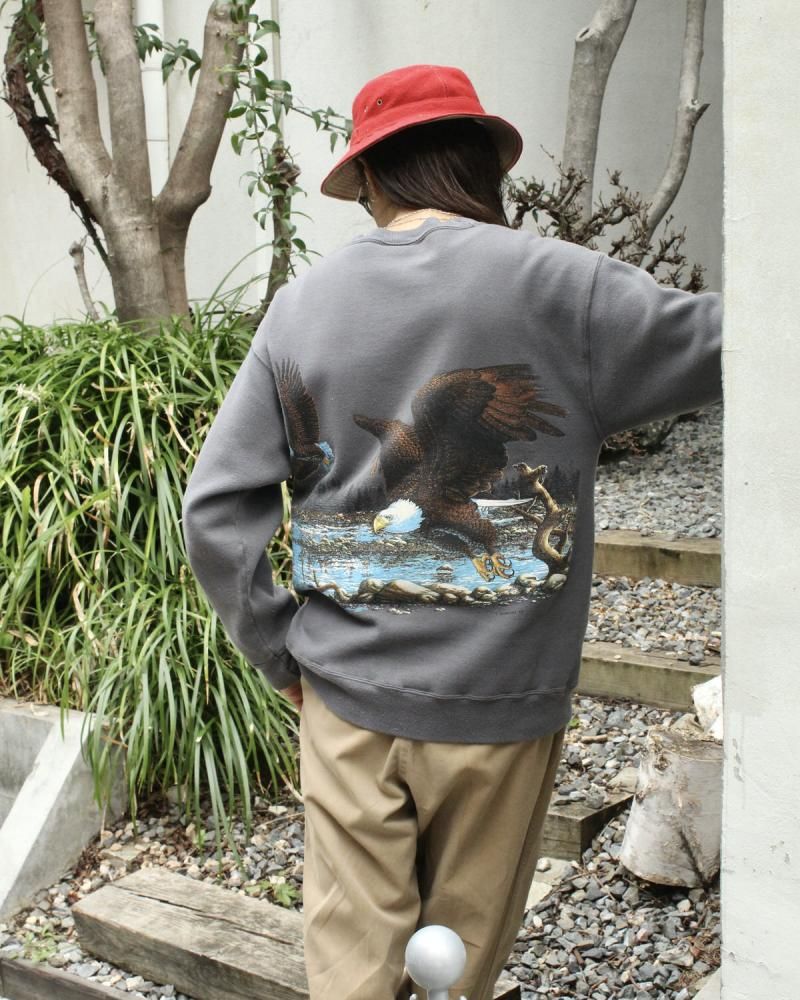 ヴィンテージ スーベニア スウェット【HABITAT 1992's-】W Sided Print Charcoal L