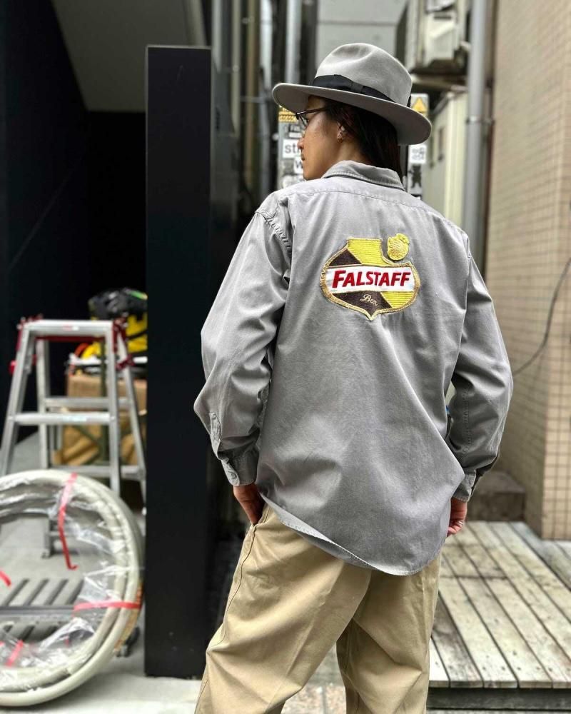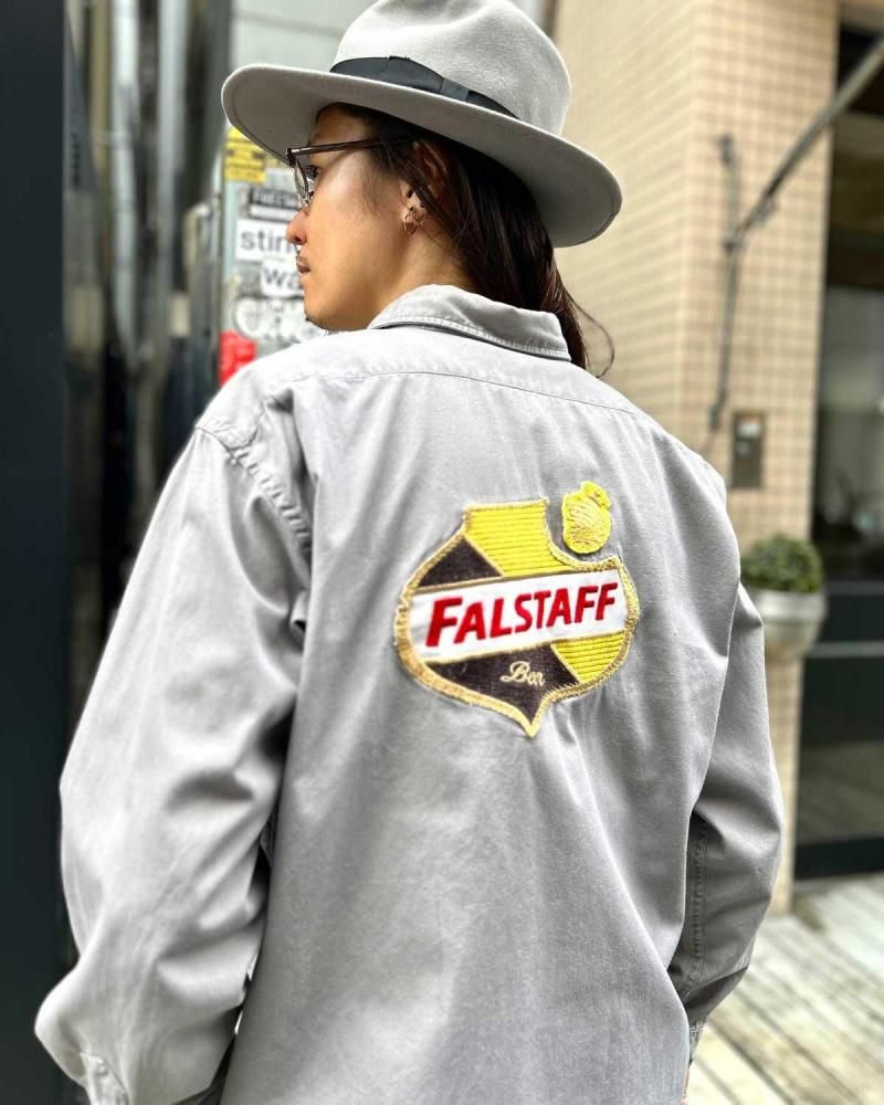 現在では販売されていませんが一大シェアをアメリカで誇っていたブルワリー"ファルスタッフ"のワッペンがよりこのアイテムらしいマニッシュな雰囲気を高めています。