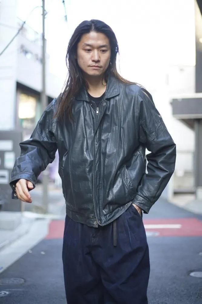 シンプルに纏められたミニマルデザインが高級感のある雰囲気、程よくゆとりのあるシルエット、柔らかに落ちるショルダーライン、リラックス感があり軽やかな印象に見せつつもレザーの重厚感も損なわない表情です。