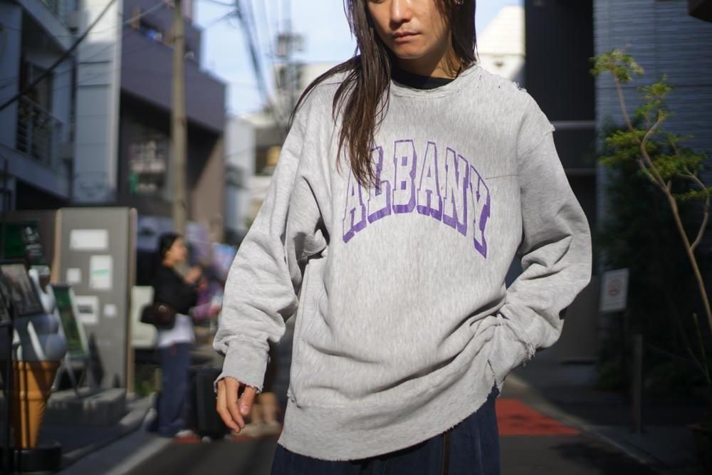染み込みプリント、チャンピオンらしいヘビーオンスのボディは痩せたとろみのある質感でヴィンテージらしい表情。