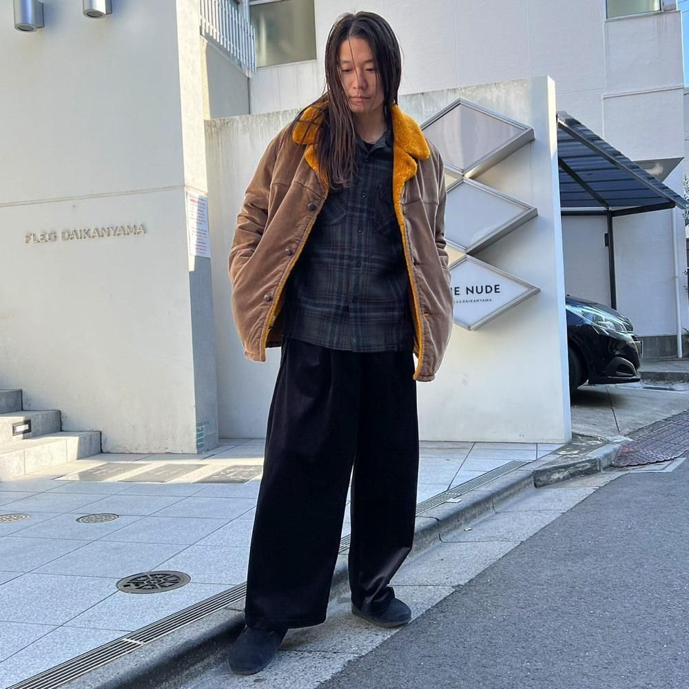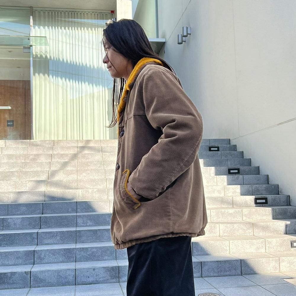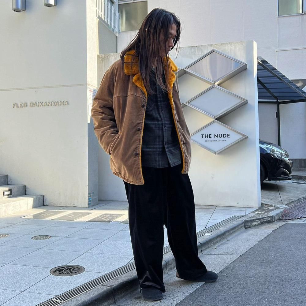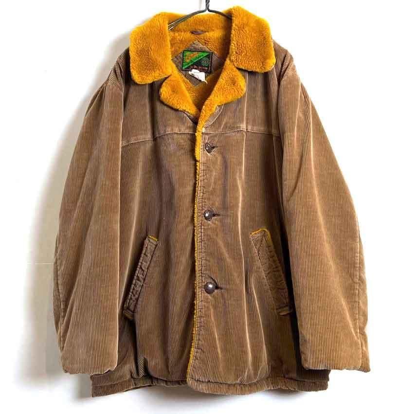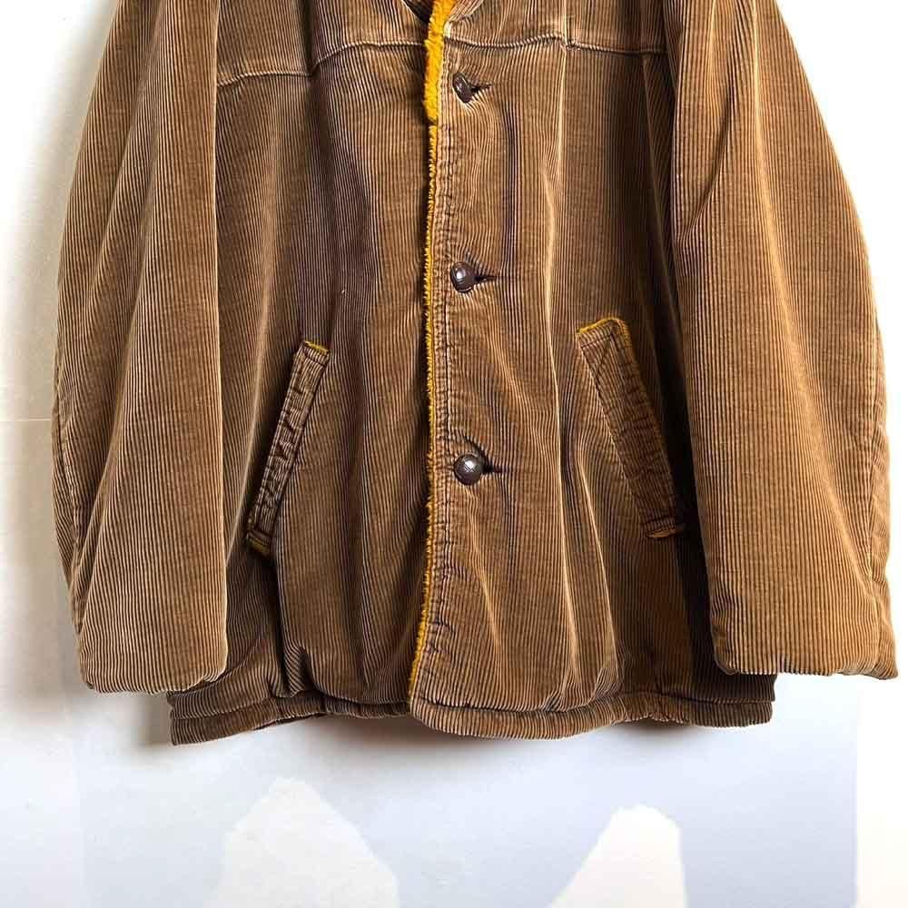 風合い良く色褪せたモカブラウンカラーのコーデュロイにマスタードカラーのボアが味のある土っぽい雰囲気な1枚