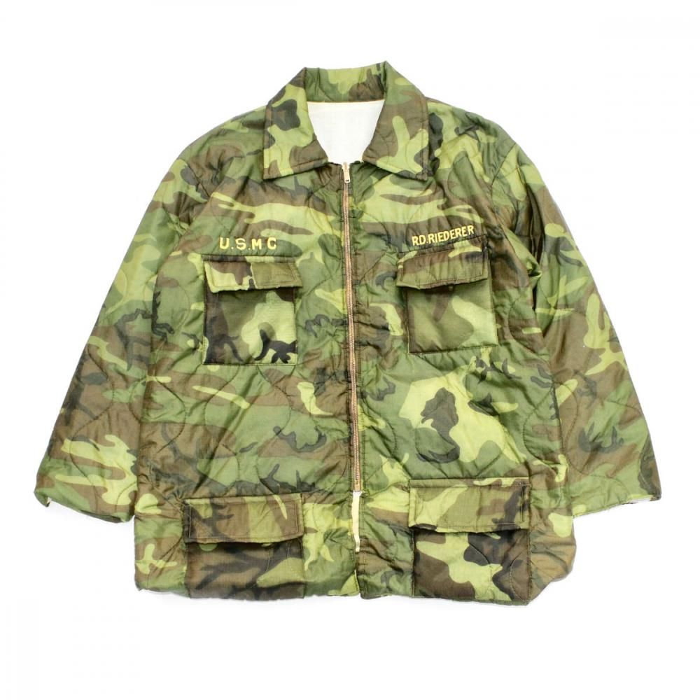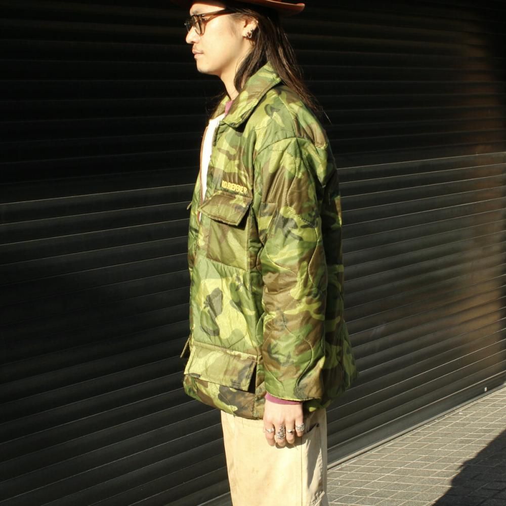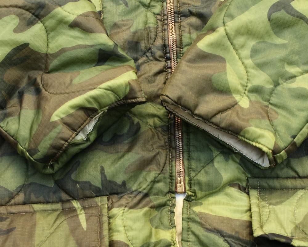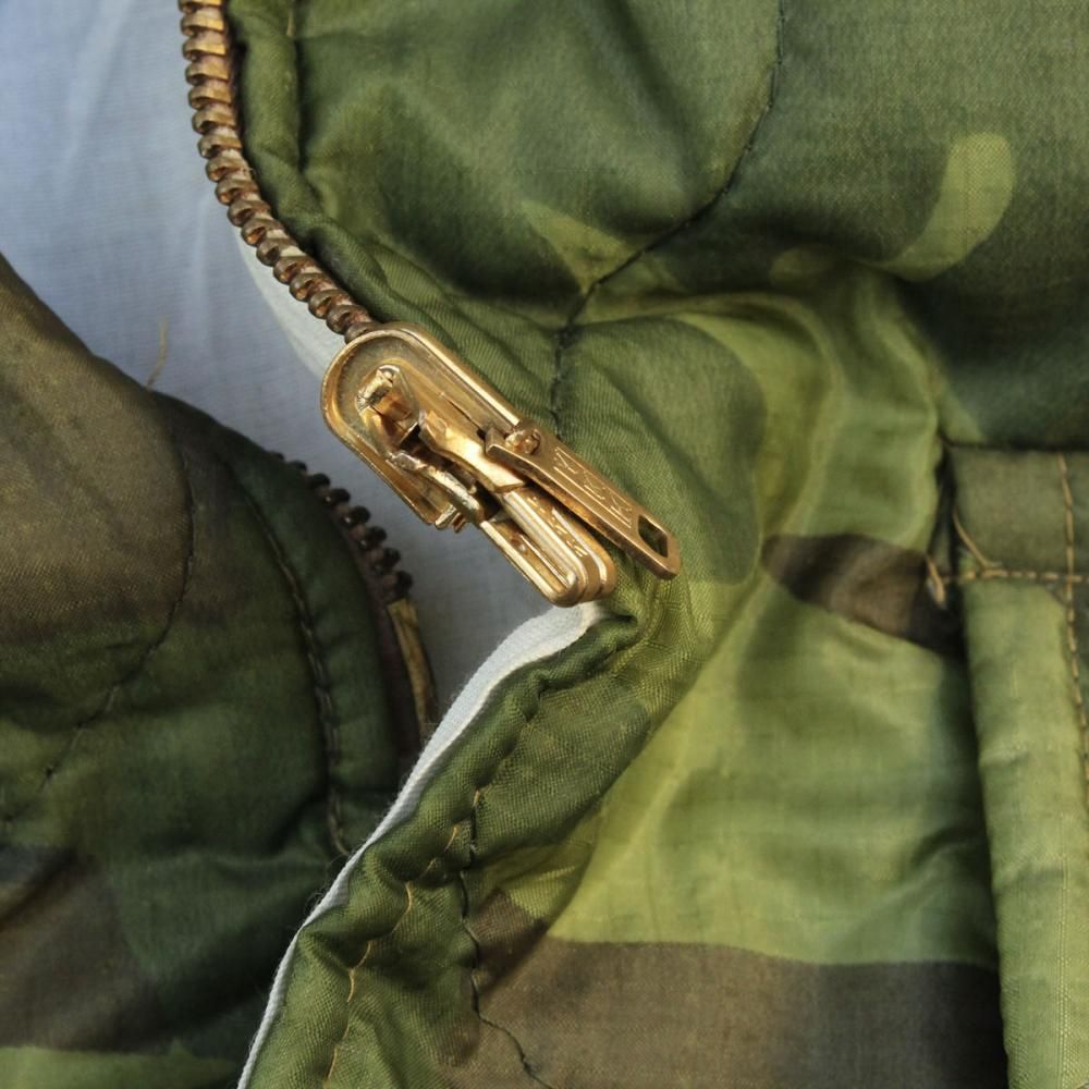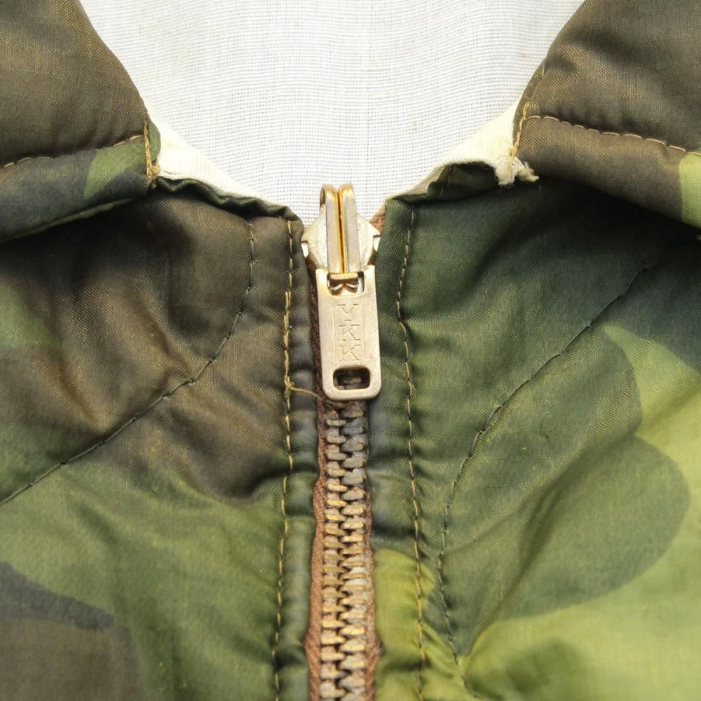 リップストップポリエステル、キルティング仕様のウッドランドカモフラージュ生地が使われたこの年代ならではの仕様でよりミリタリーアイテムらしい見栄え。