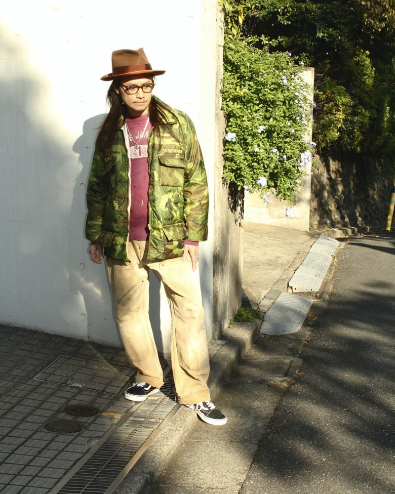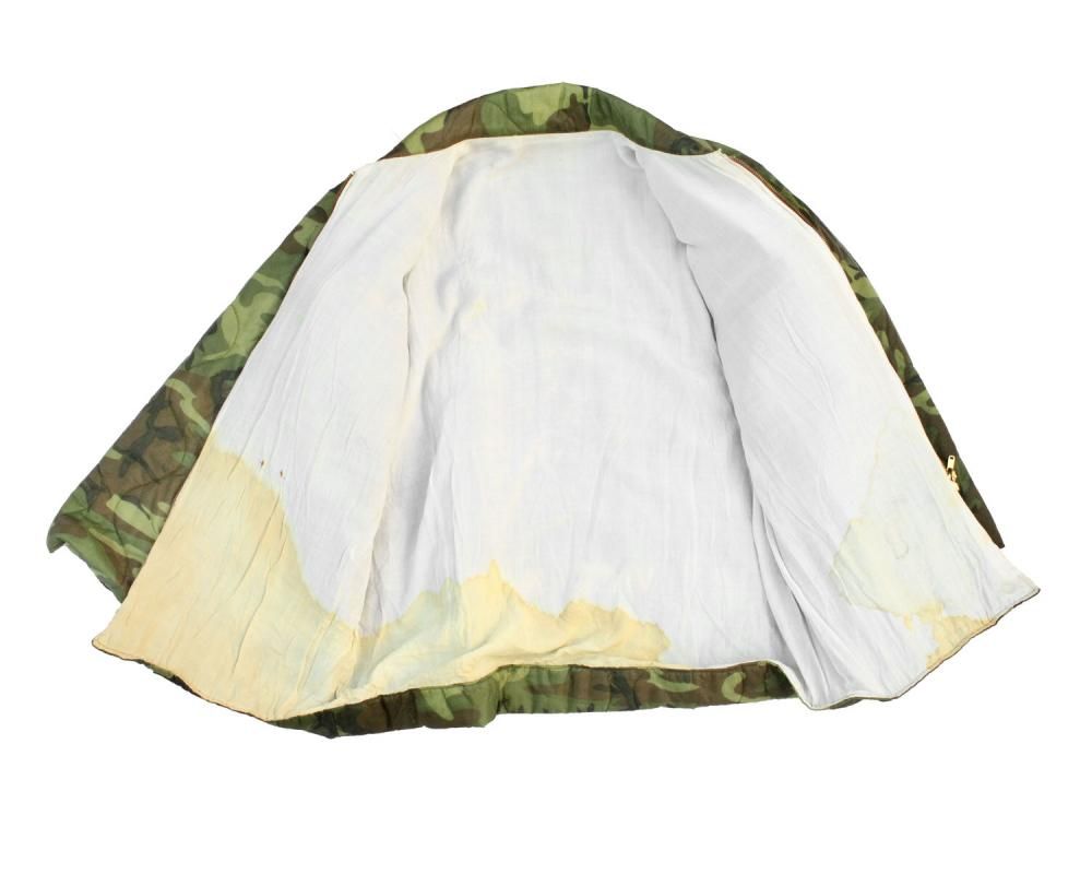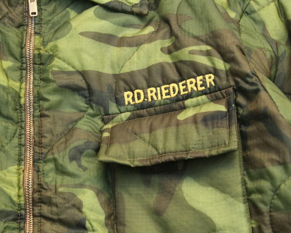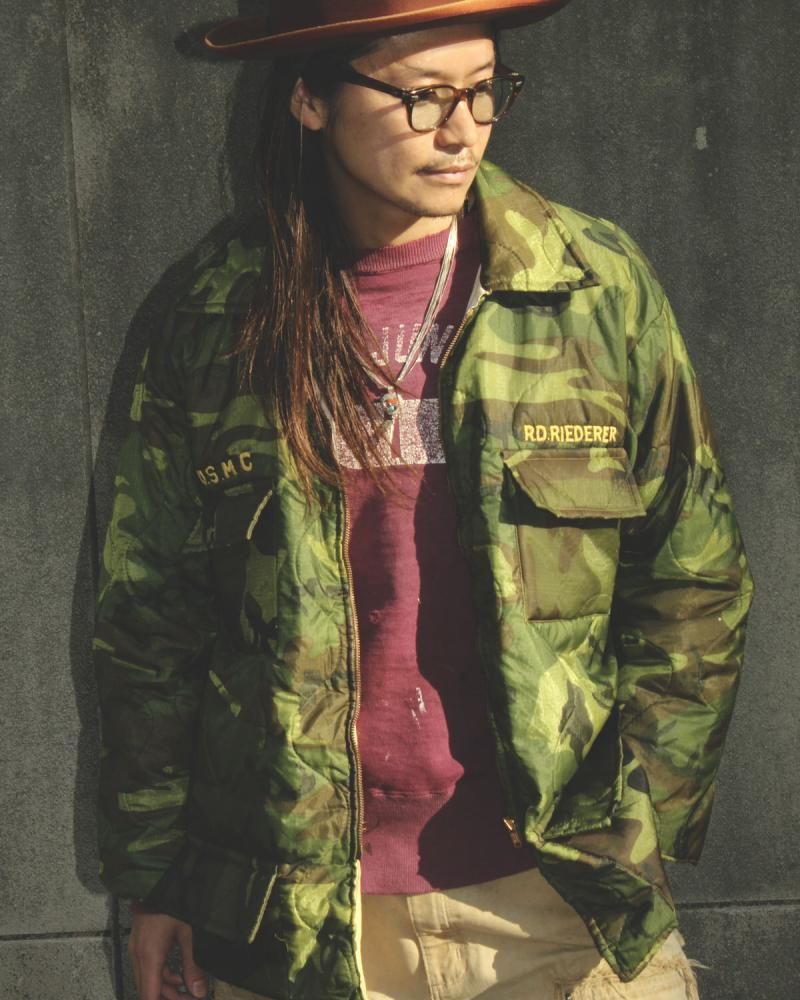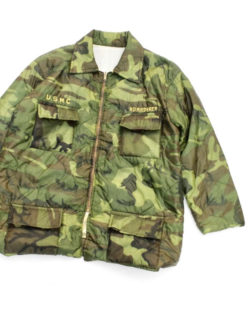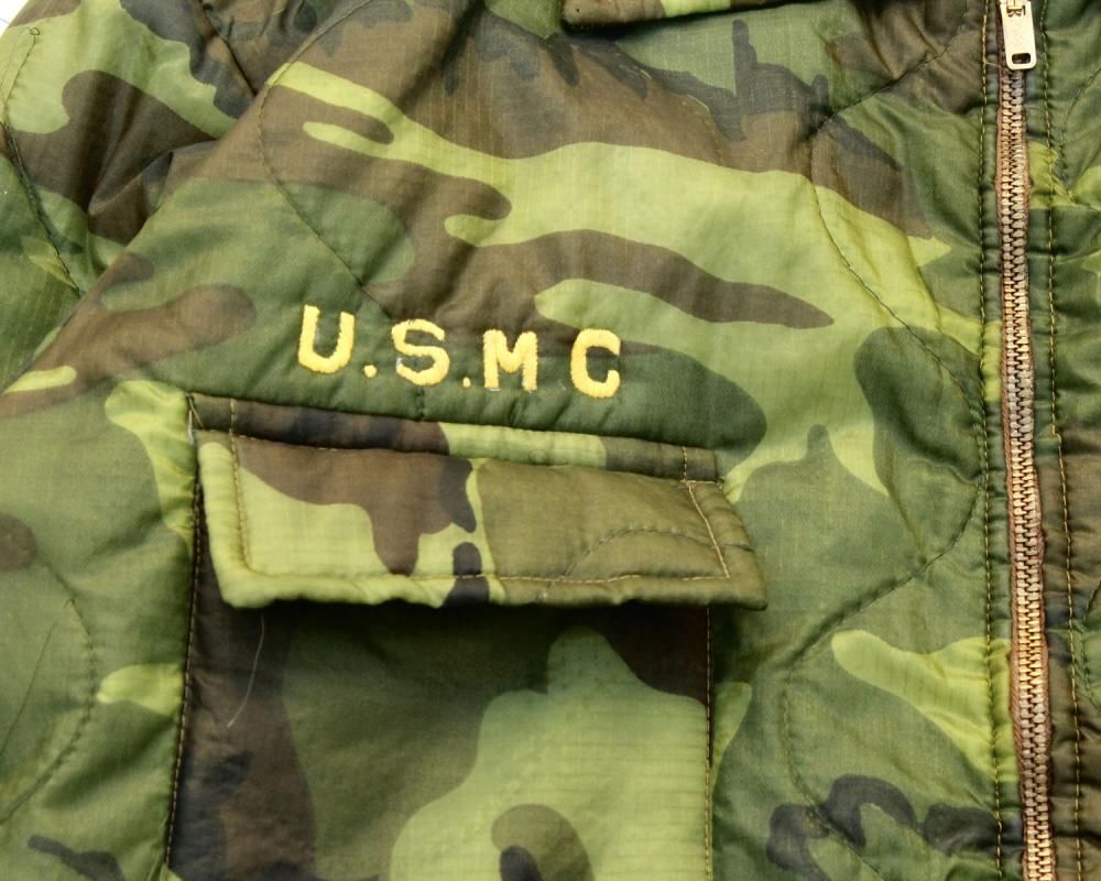 リップストップポリエステル、キルティング仕様のウッドランドカモフラージュ生地が使われたこの年代ならではの仕様でよりミリタリーアイテムらしい見栄え。