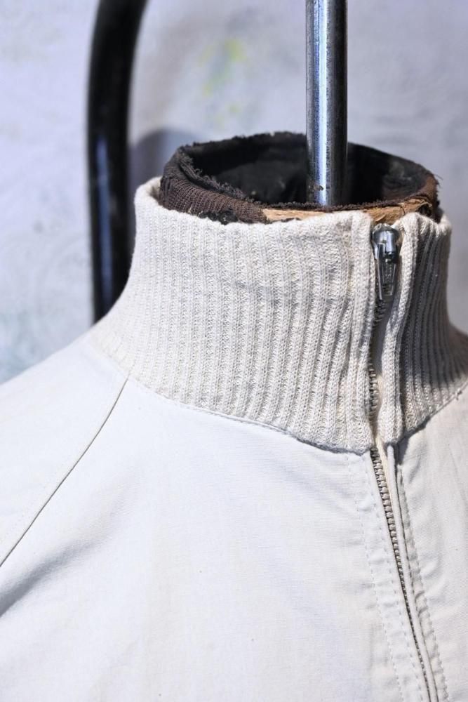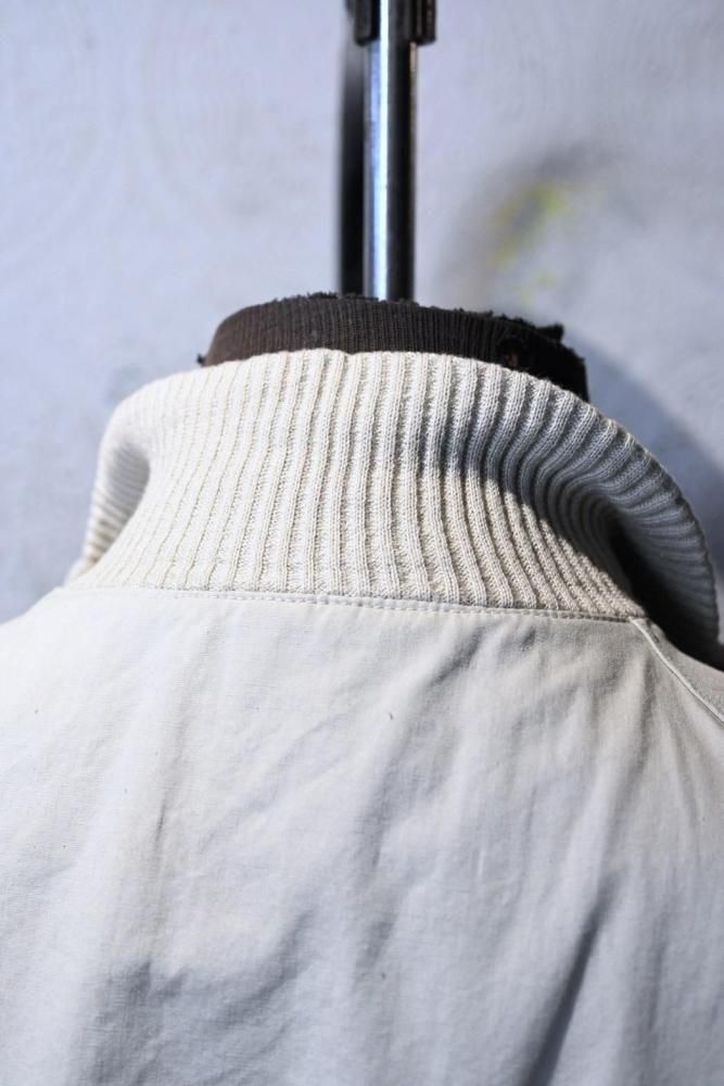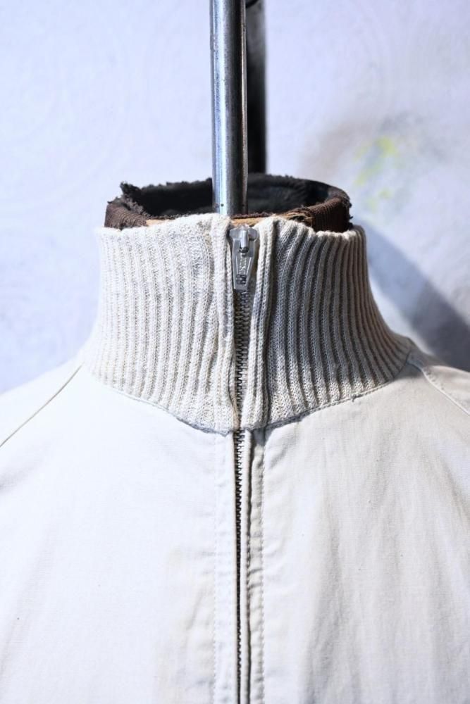 この手のカレッジ系のジャケットでは比較的見ることの少ないニットリブのハイネックに、ダブルジップ仕様。