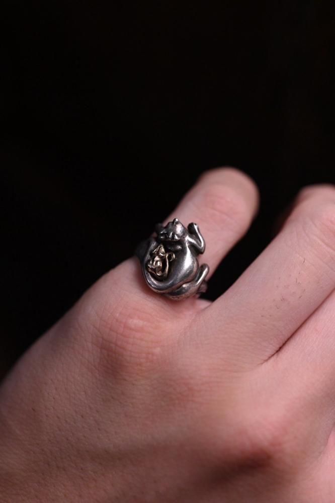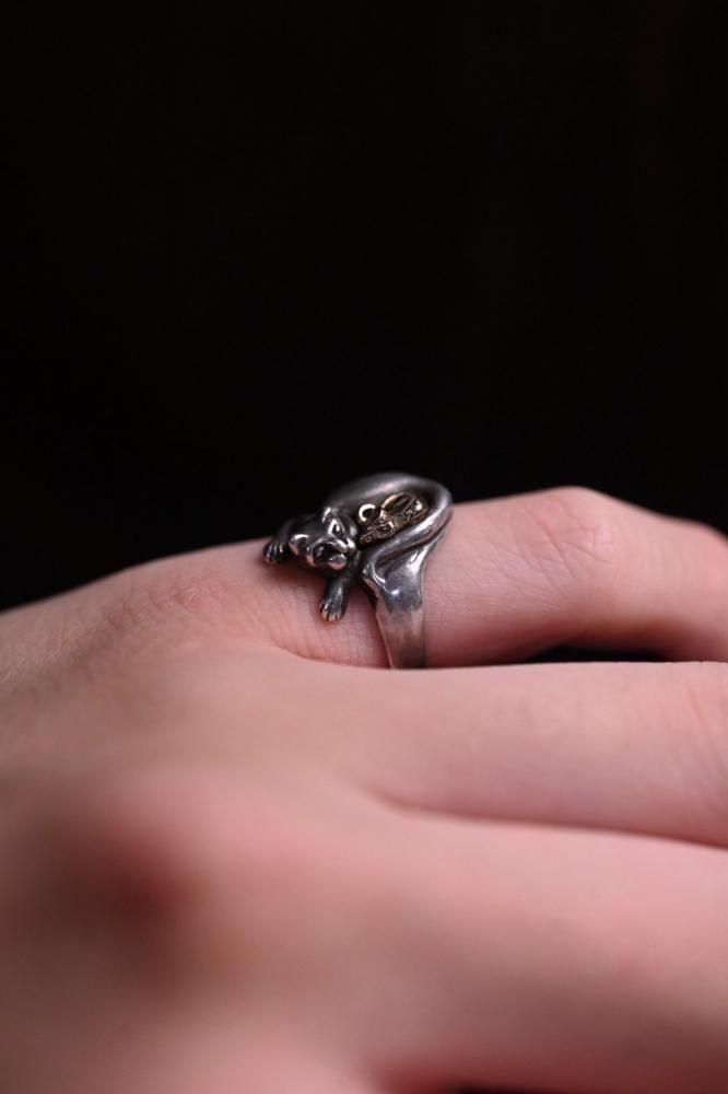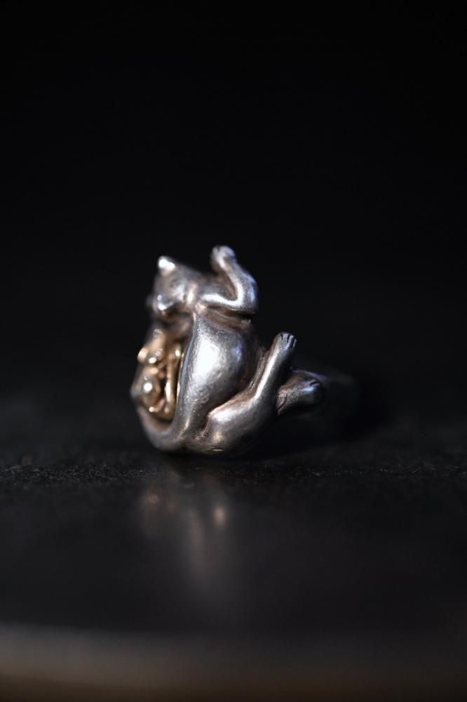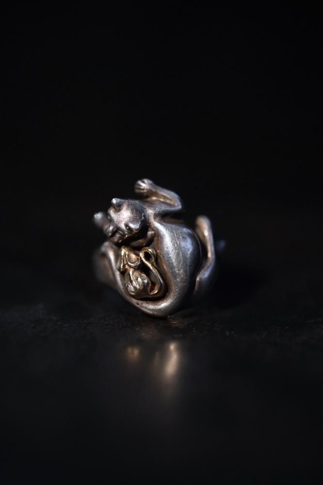 Vintage silver cat × 14K mouse ring ヴィンテージ シルバー キャット 14K マウス リング