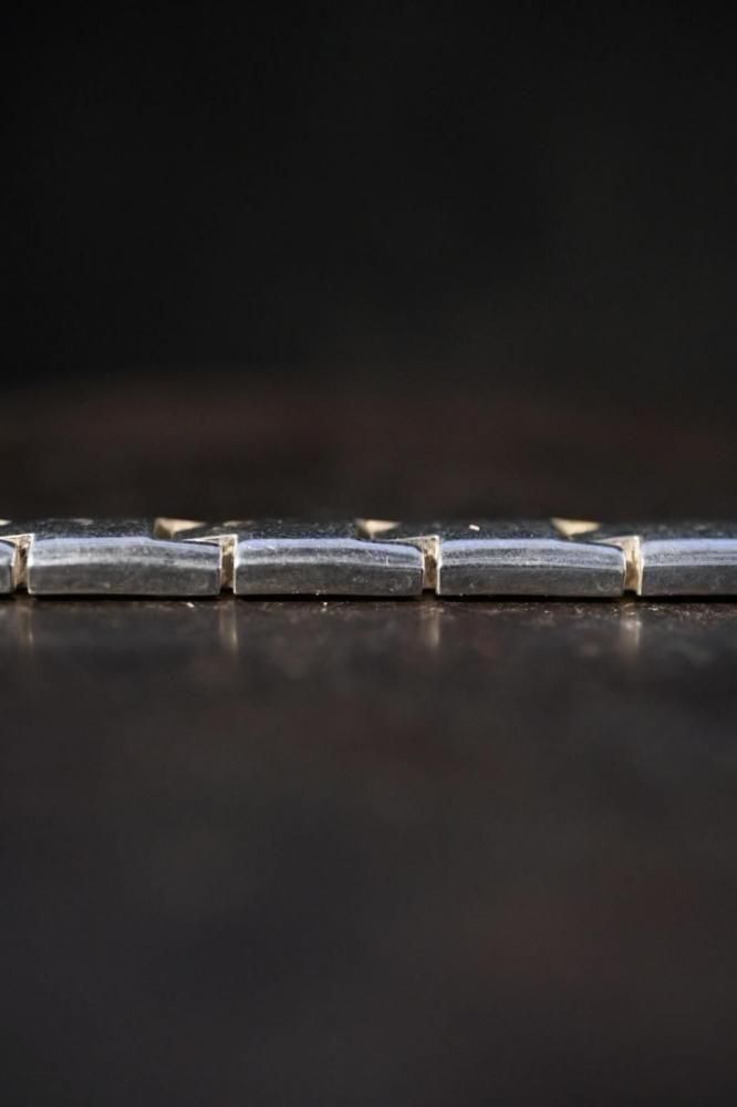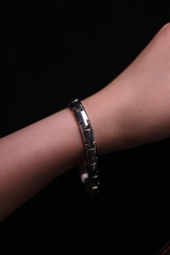 シルバーの無骨な男らしさと、品のあるモダンさを感じれるブレスレットです。