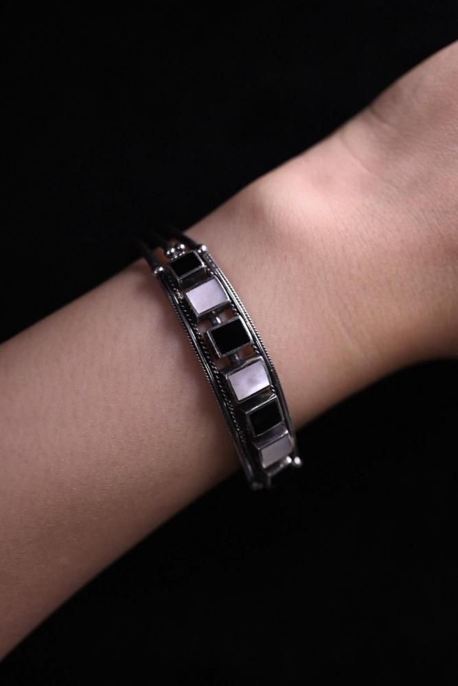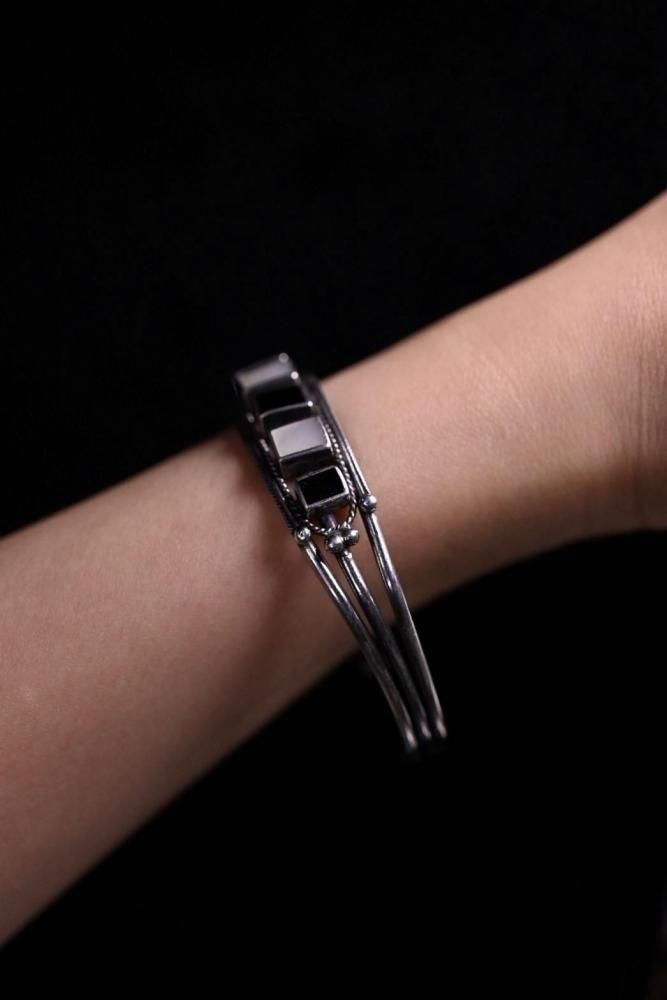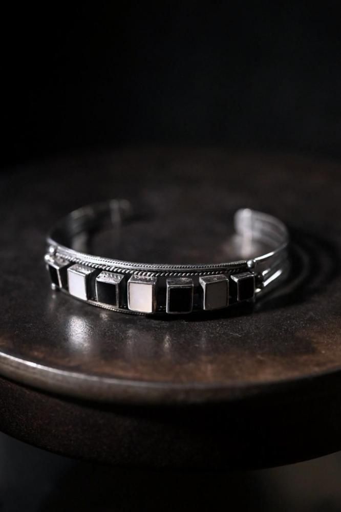 Vintage silver × shell × onyx bangle ヴィンテージ シルバー シェル オニキス ブレスレット