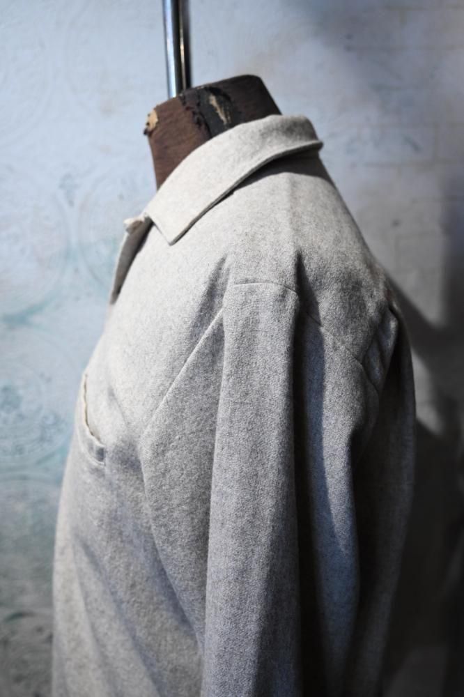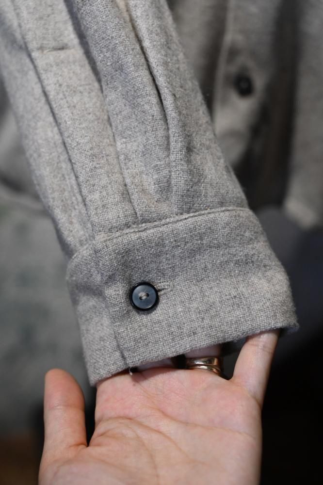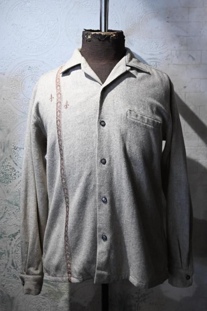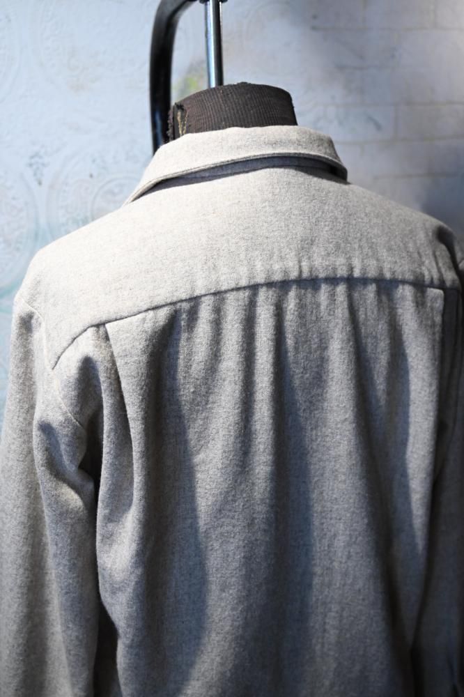 開襟に、ボックスのシルエットでこの時代のカジュアルシャツとしてベーシックなパターンですが、温もりがあり、どこか重厚感すらある印象。