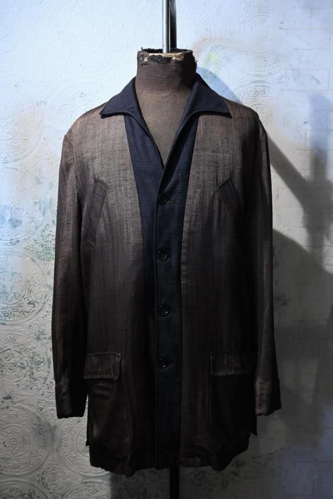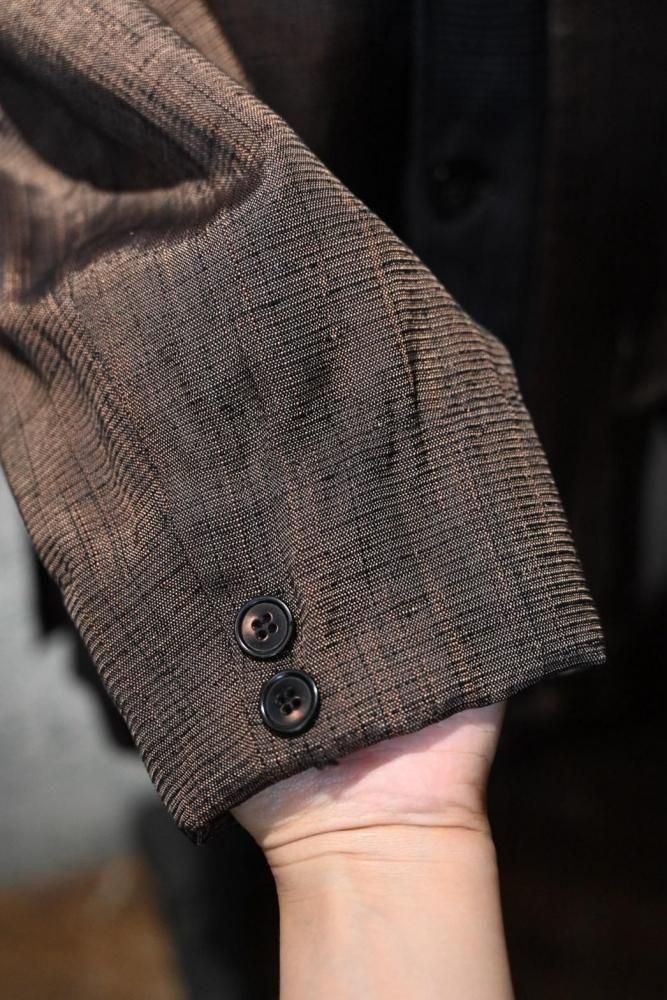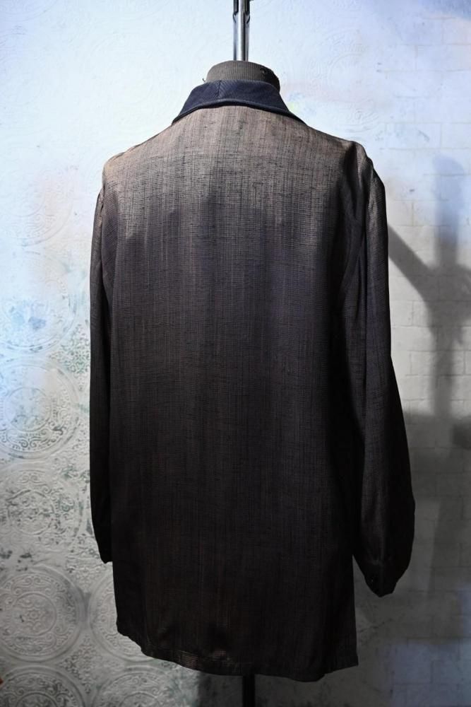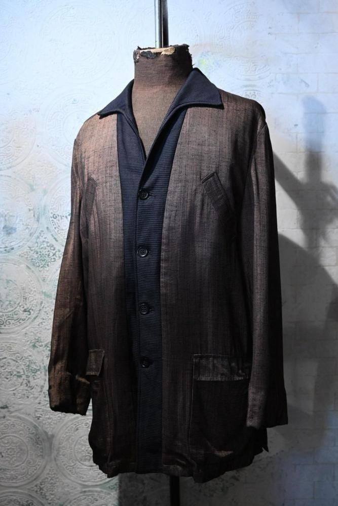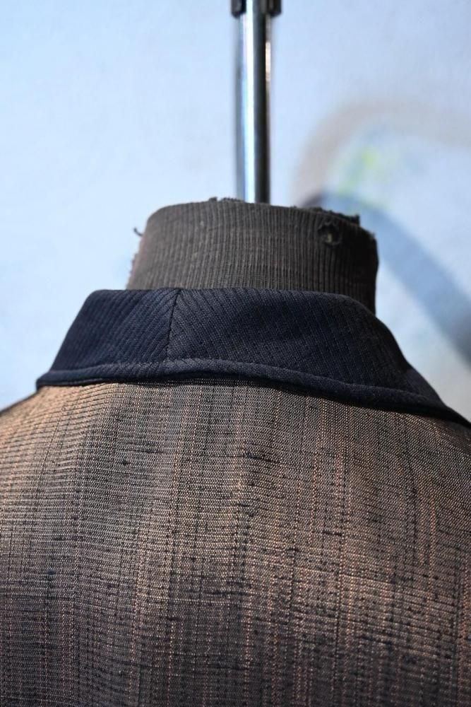 ブラウンの細かくスラブの入ったレーヨンと思われる軽やかな生地に、ブラックのピケのコンビ。
