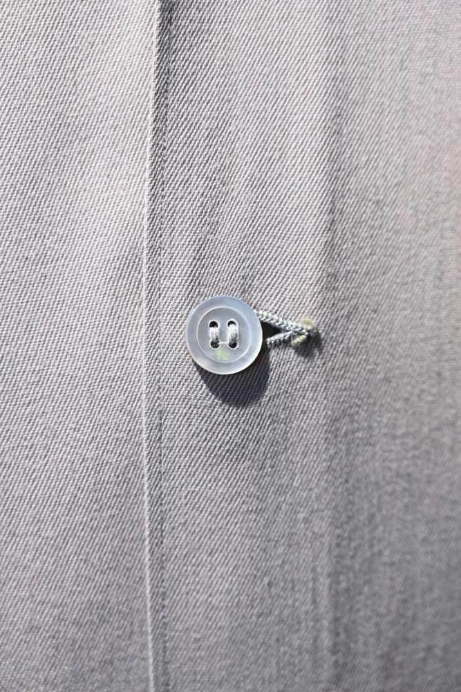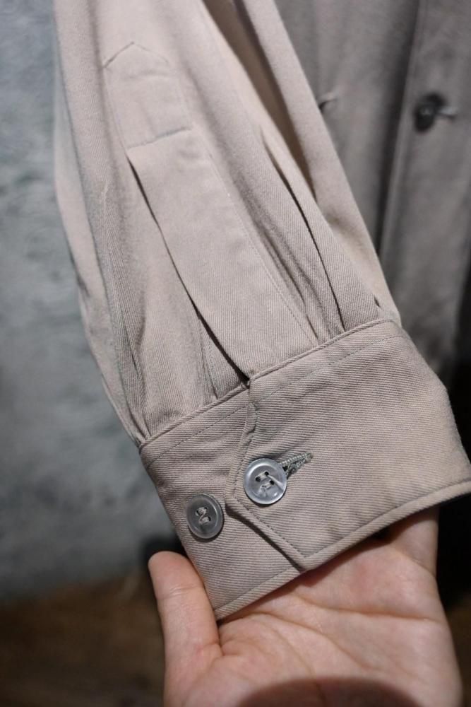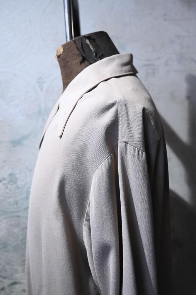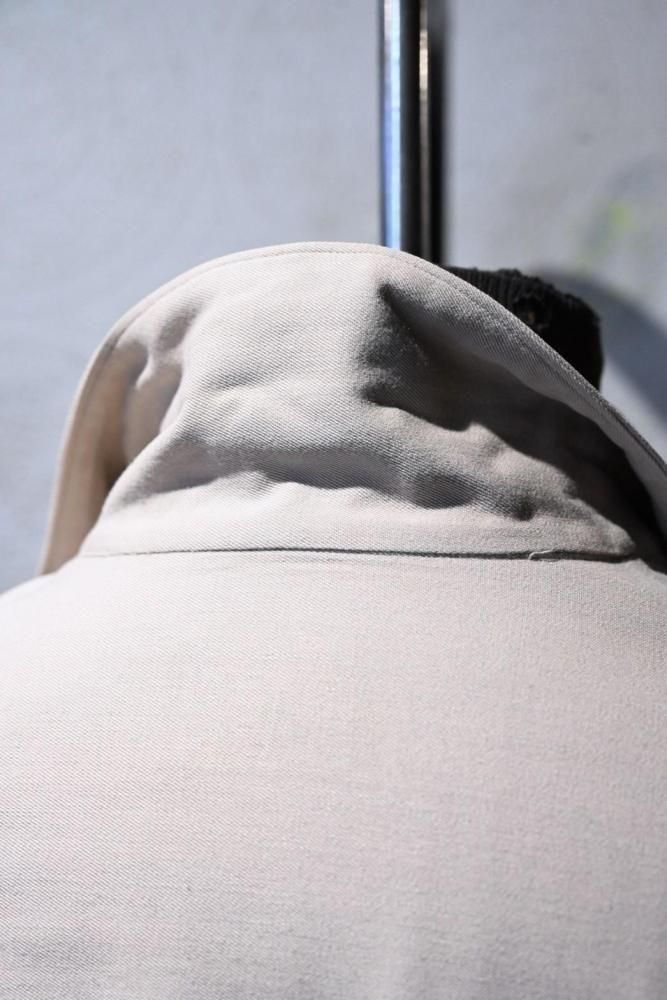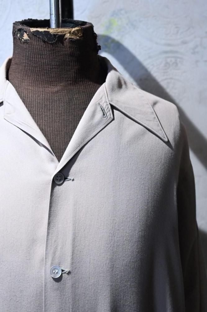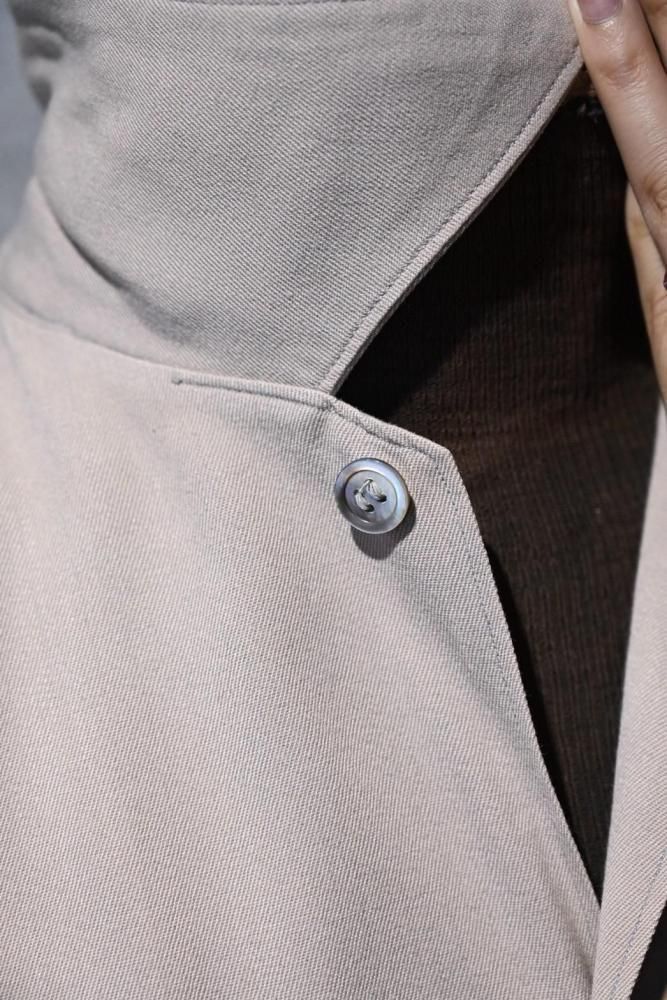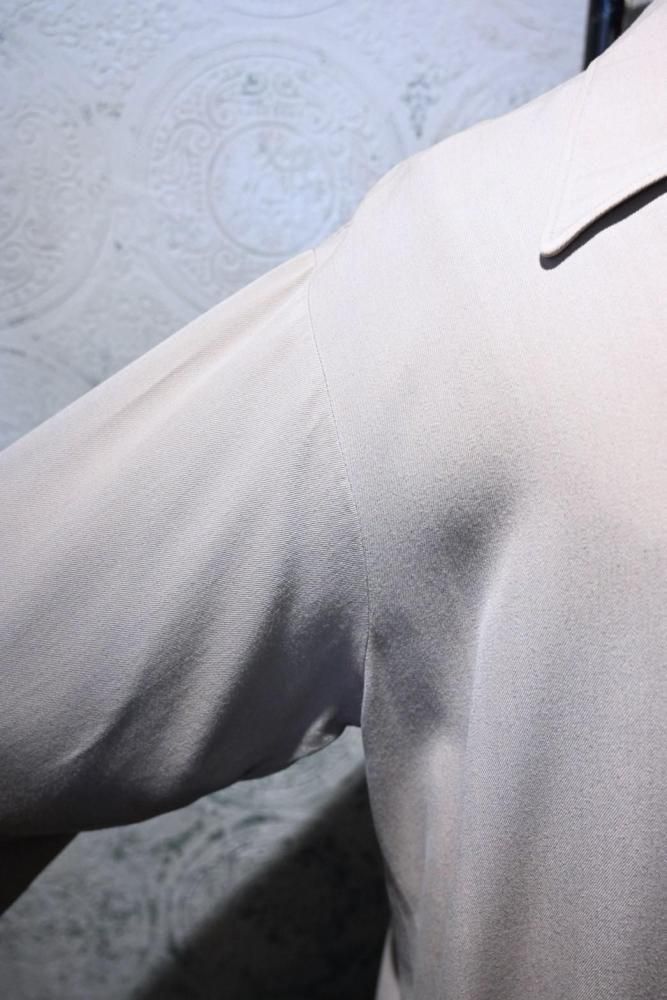 とろっとした肉感のあるベージュのレーヨンギャバジンで作られたジャケット。