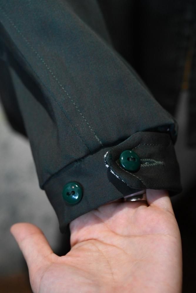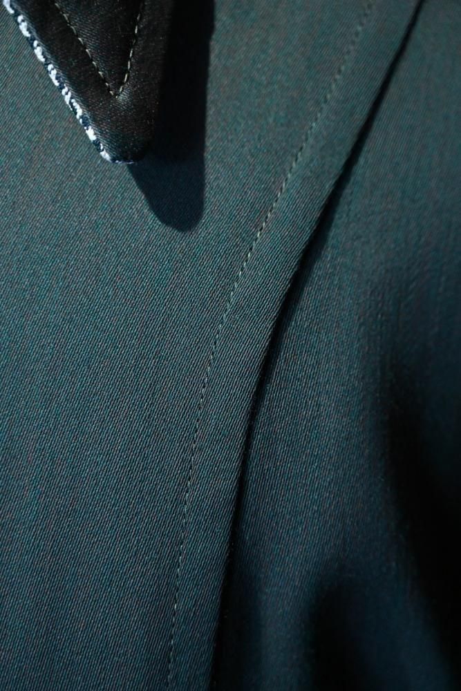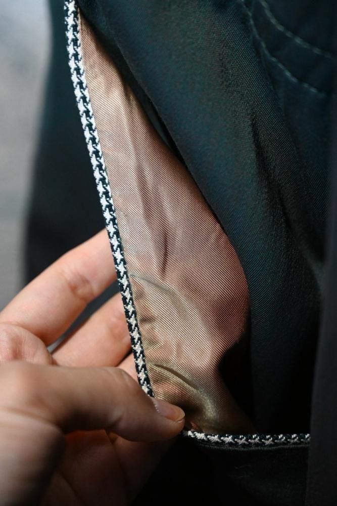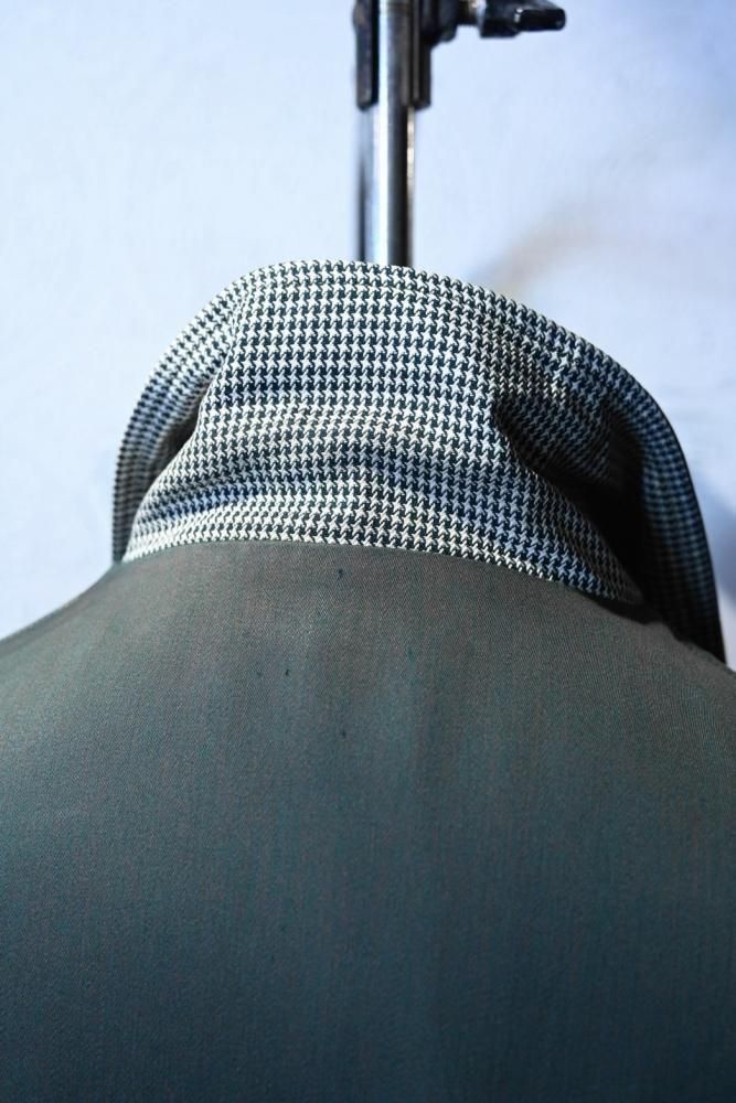 奥行きのあるダークグリーンのレーヨンギャバジンと、白と緑の千鳥柄のリバーシブル。