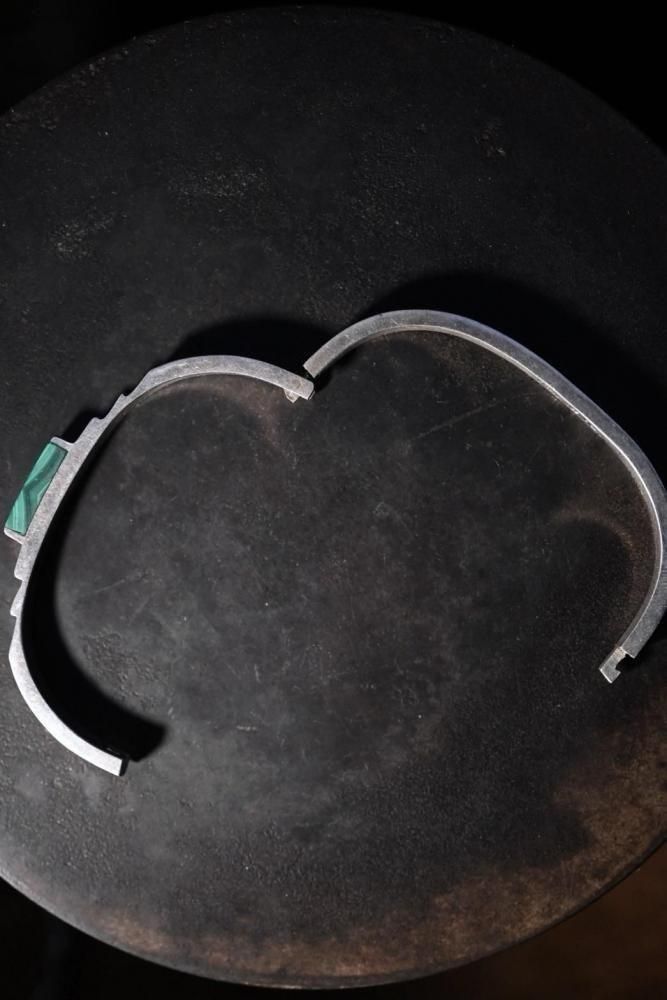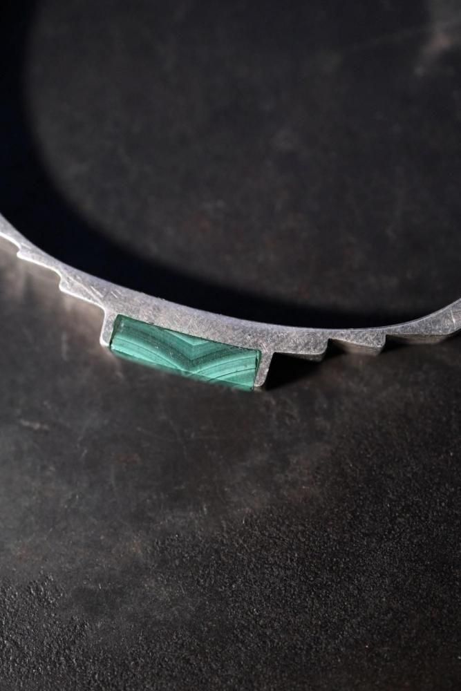 シルバーのベースに奥行きのあるきれいな表情のマラカイトのコンビ。