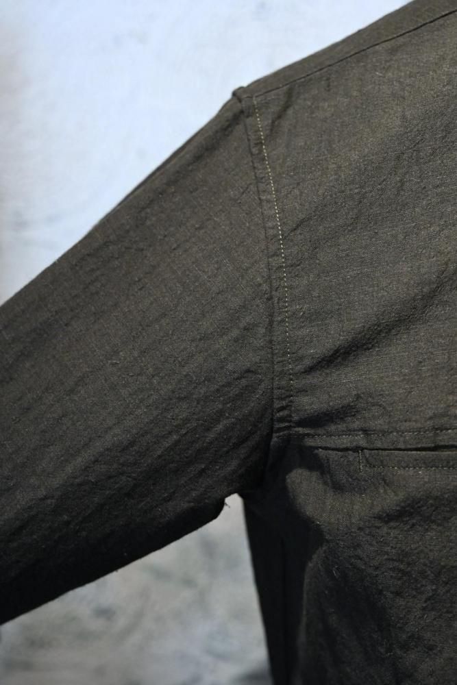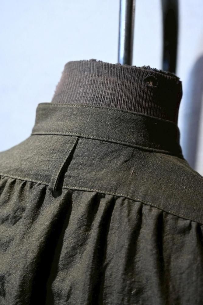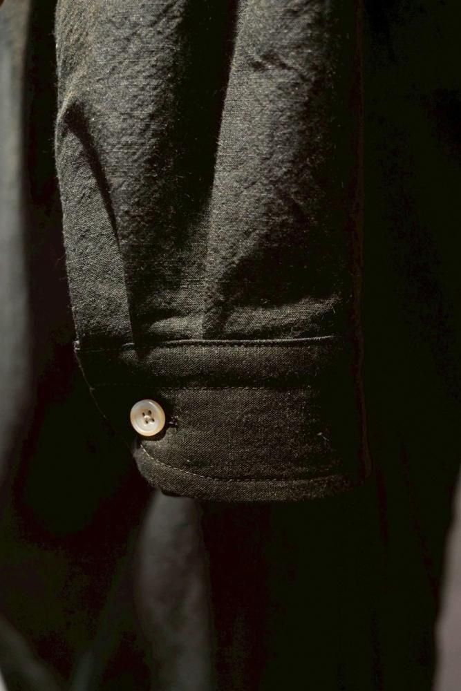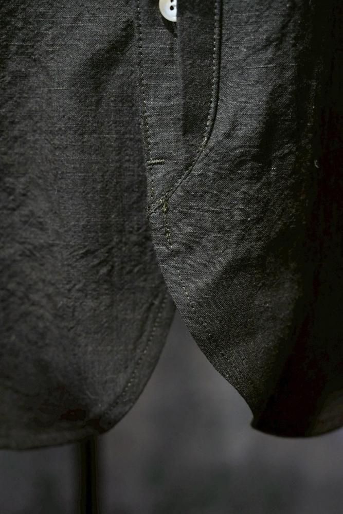 ボタンが半分のみ出るよう設計された比翼の前立て、胸元の切り替えに付くポケットなど見せない美学を込めました。