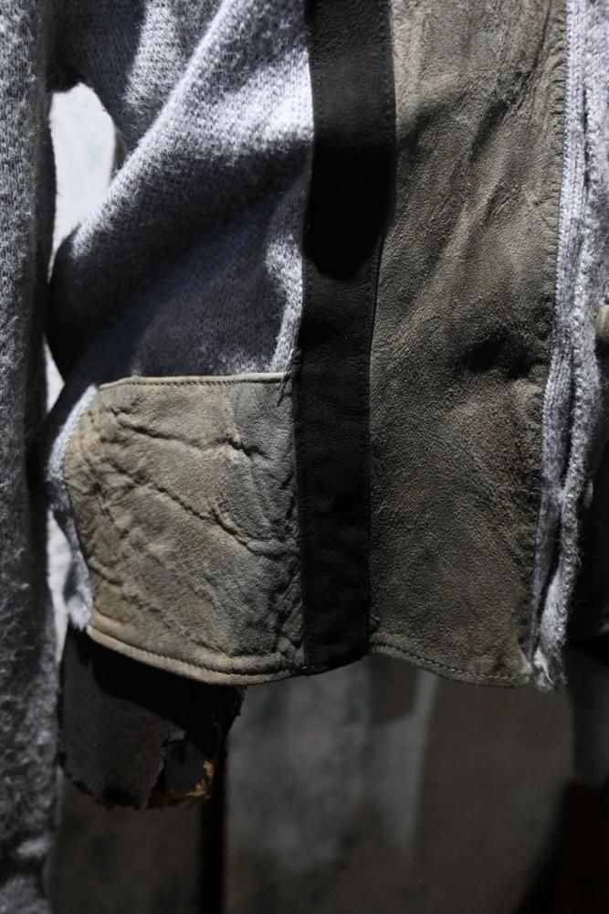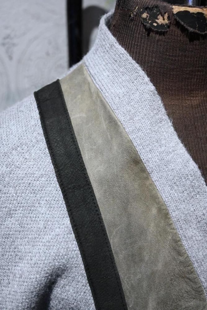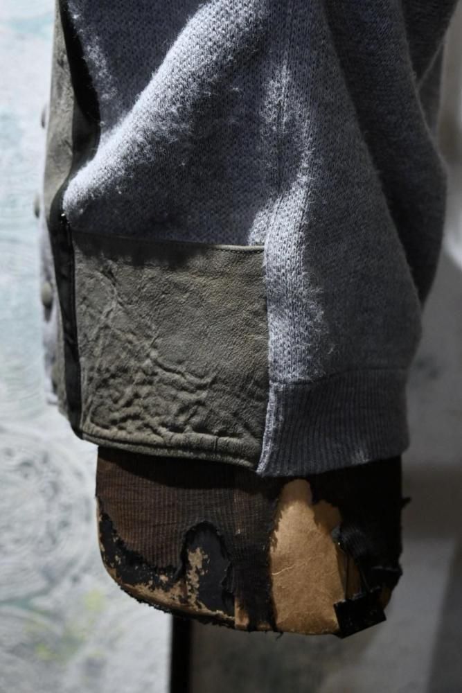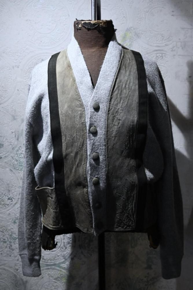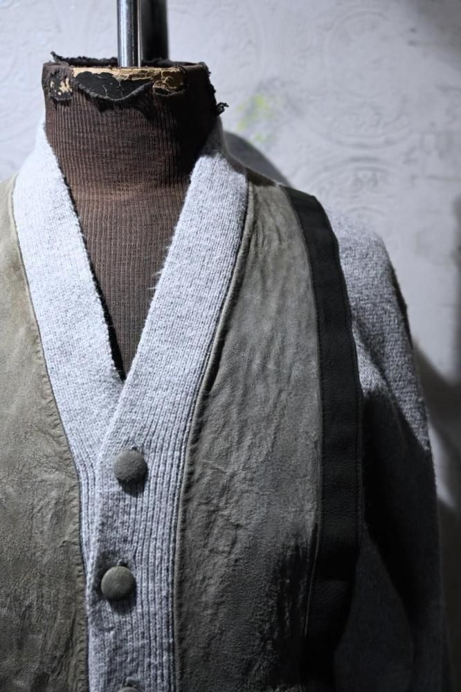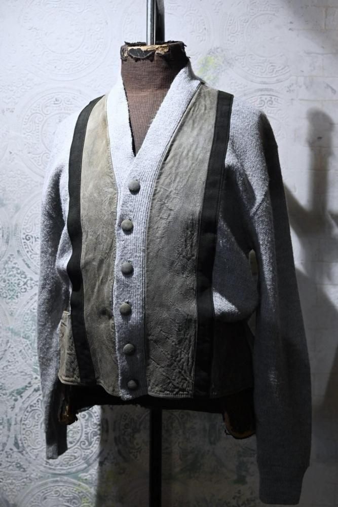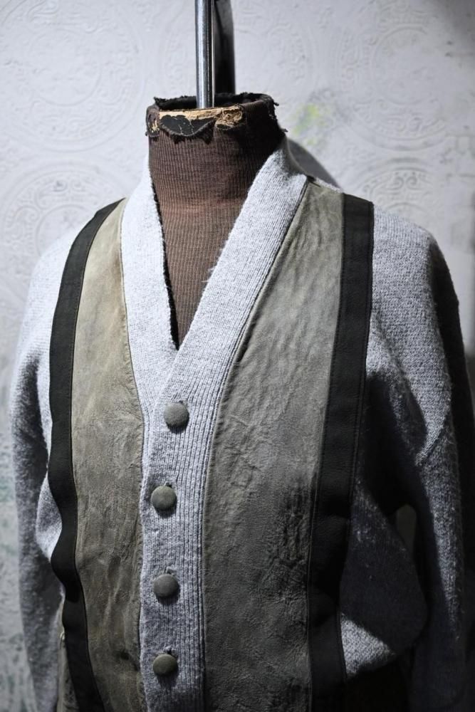1970年代頃に作られたアクリルニットとスウェードのコンビのカーディガン。