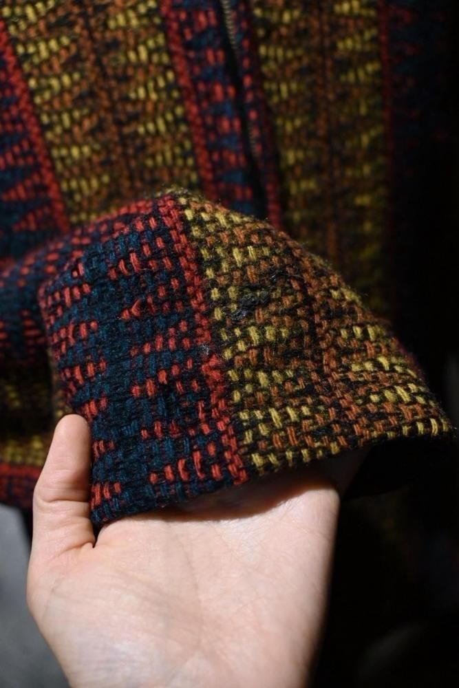 落ち着いたトーンでカラフルな色合いで織られたウール。