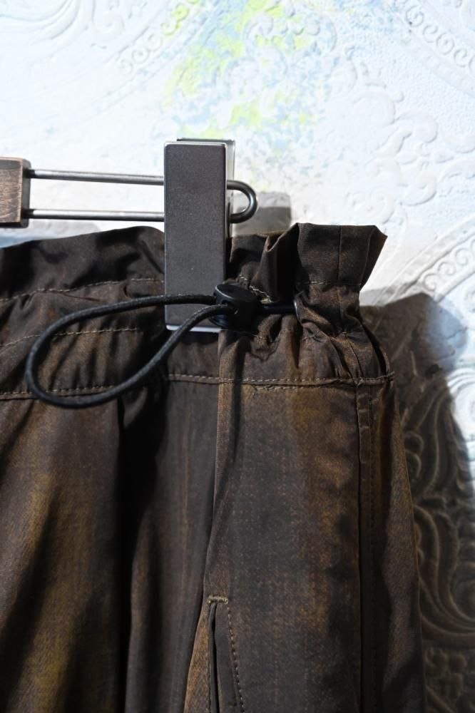 ウエスト、裾口はコードゴムによって調整可能。ウエストは最大値を100cmまでもっていくことで幅広い体型の方にお勧めできるのはもちろん、オーバーパンツとして近年の流れでもあるウエスト部分のレイヤードもできるよう構築。