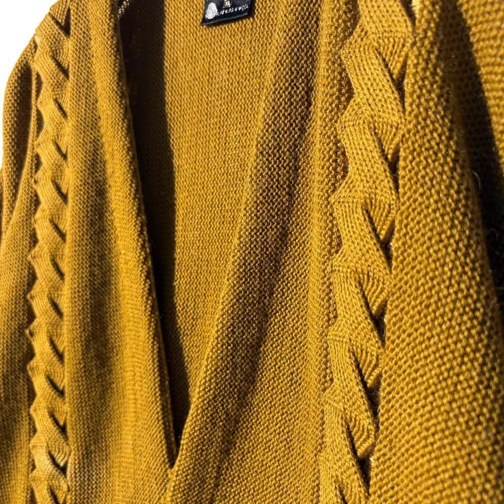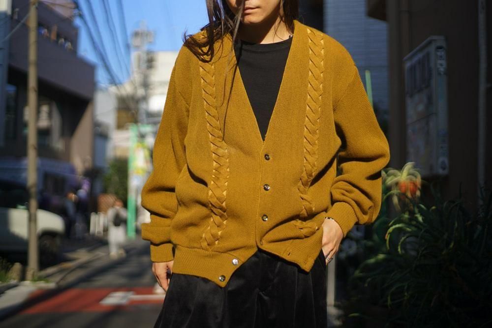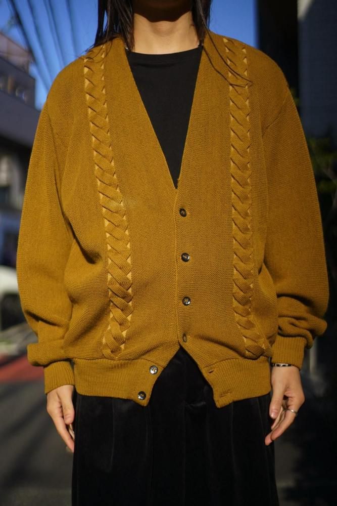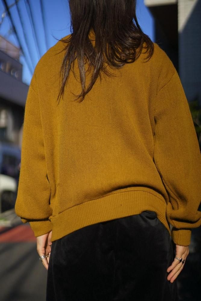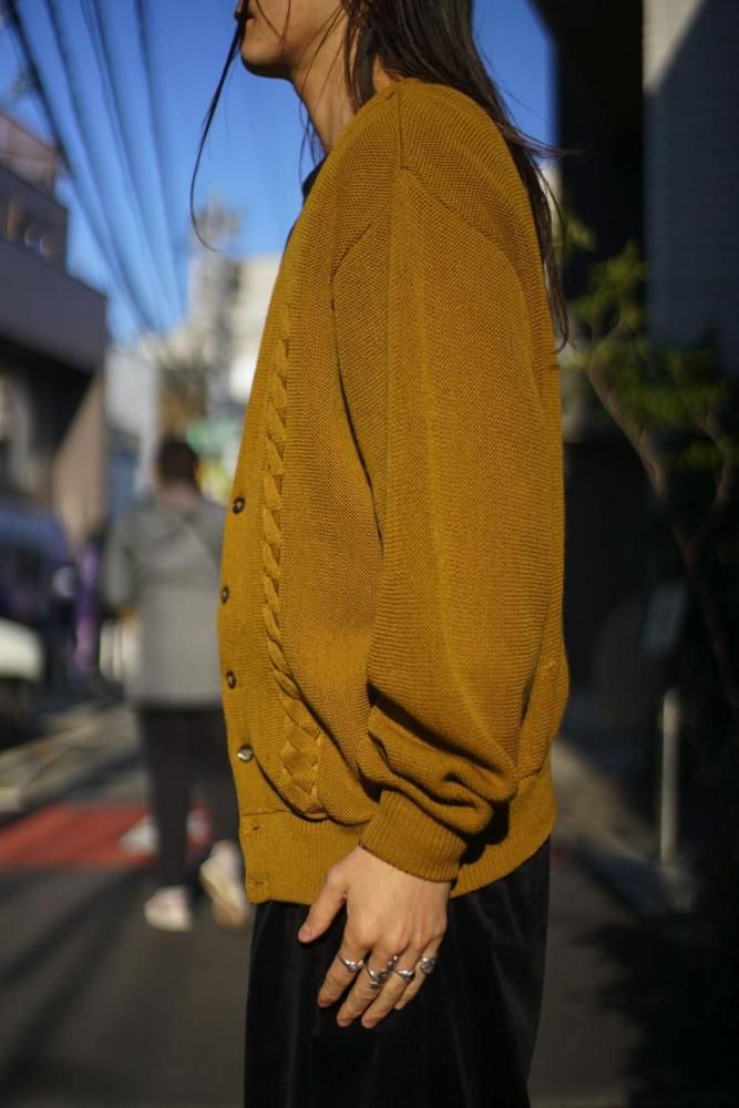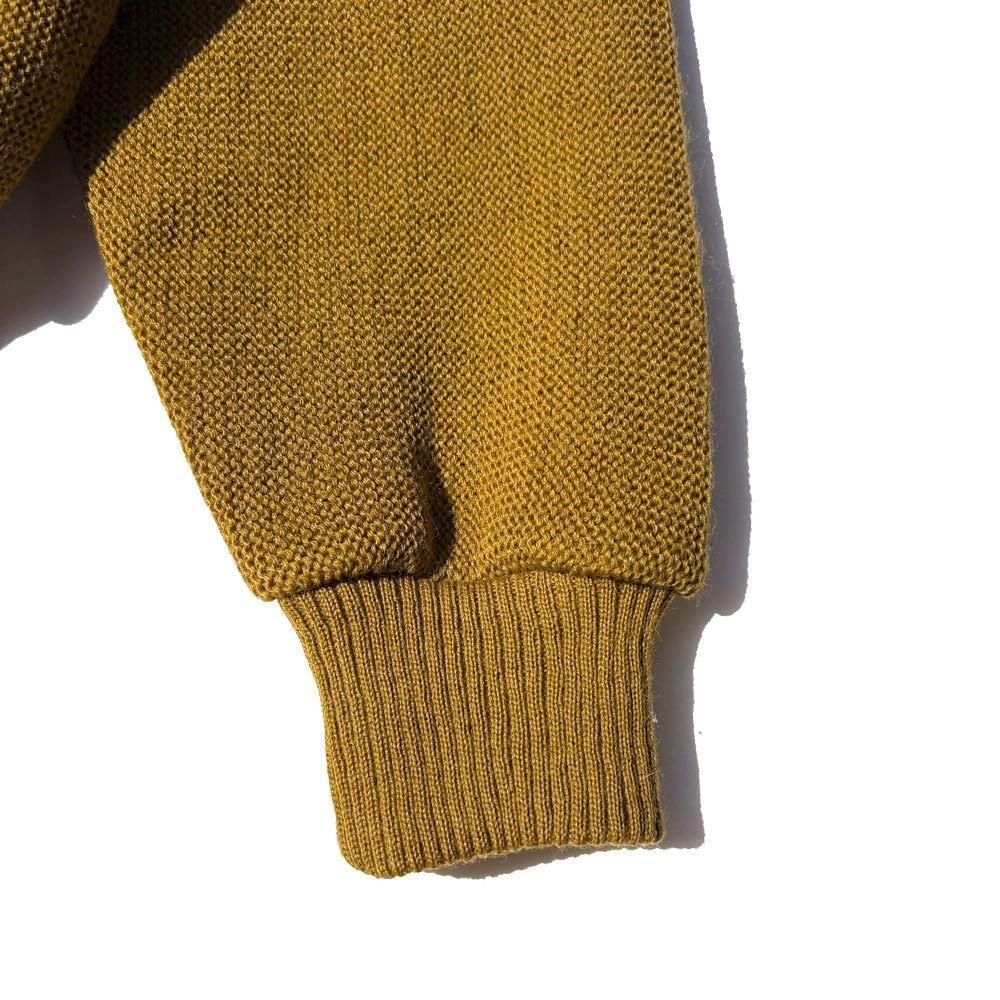 ヴィンテージらしいくすんだマスタードカラーが上品な表情、切り替えられたケーブル編みがポイント。