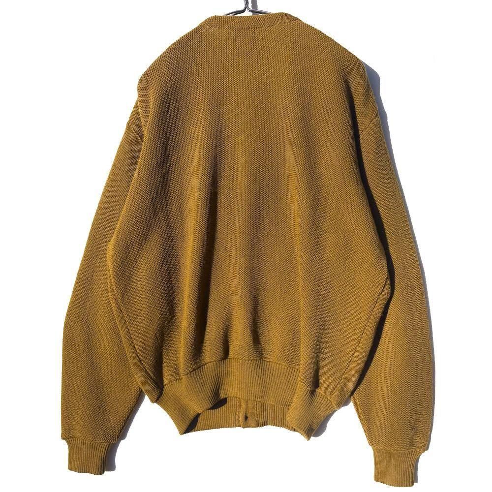 60年代らしい狭めのVゾーンがクラシックなデザイン、中肉のしっかりとした厚みのウール糸で編み立てられレタードカーディガンのような趣もあり経年によるクッタリと柔らかく滑らかな質感。