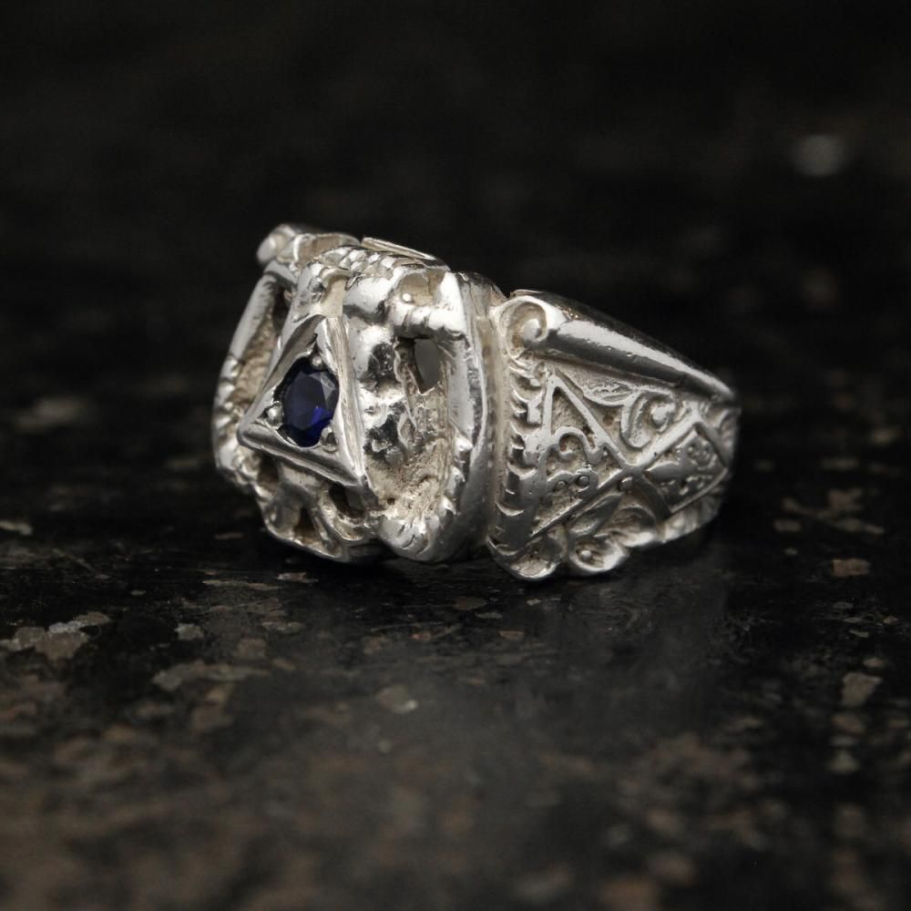 ヴィンテージ フリーメイソン スコティッシュ ライト リング【32 Degree Scottish Rite 1950's~】【STERLING × Sapphire】
