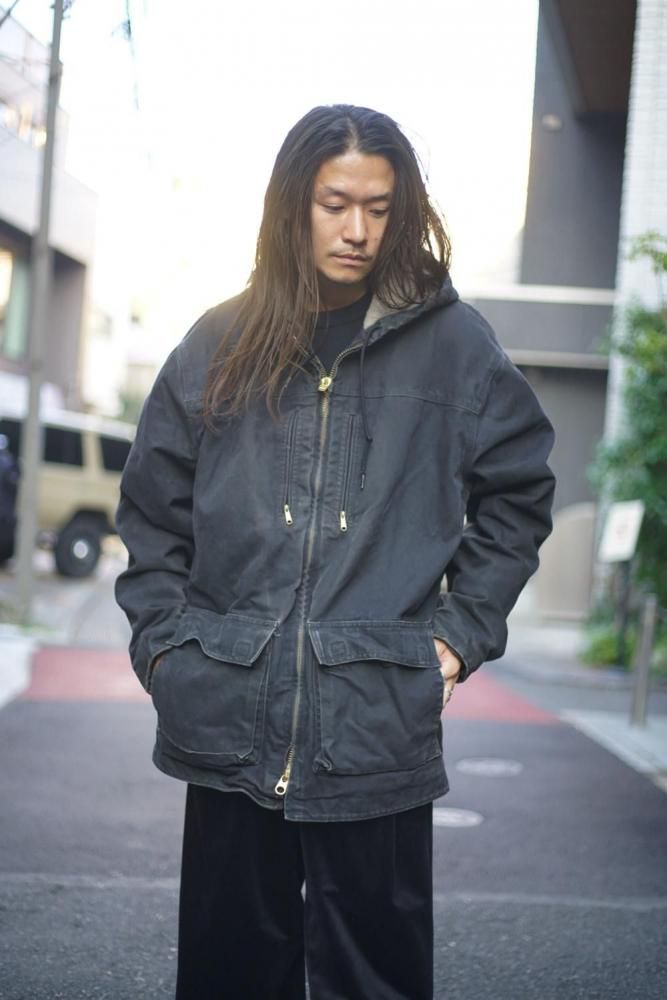 ヘビーオンスの頑丈なダック生地が採用され泥臭く無骨な男らしい印象。