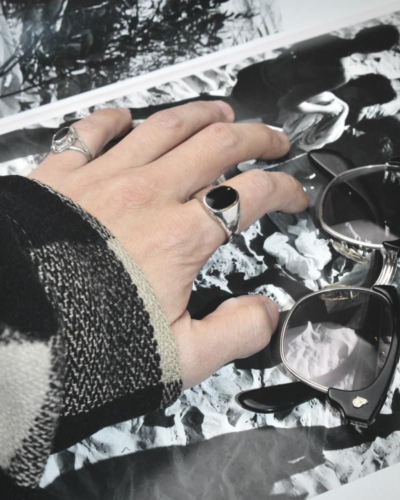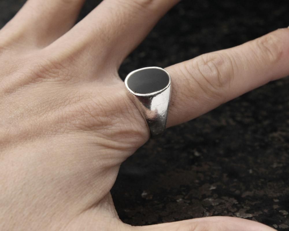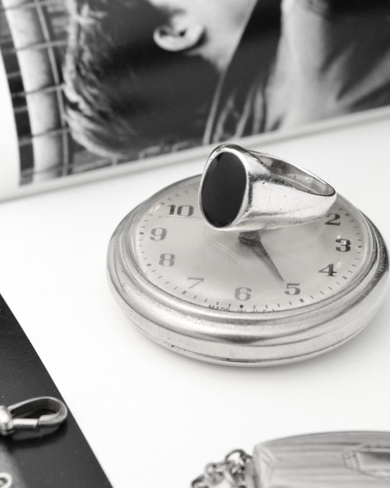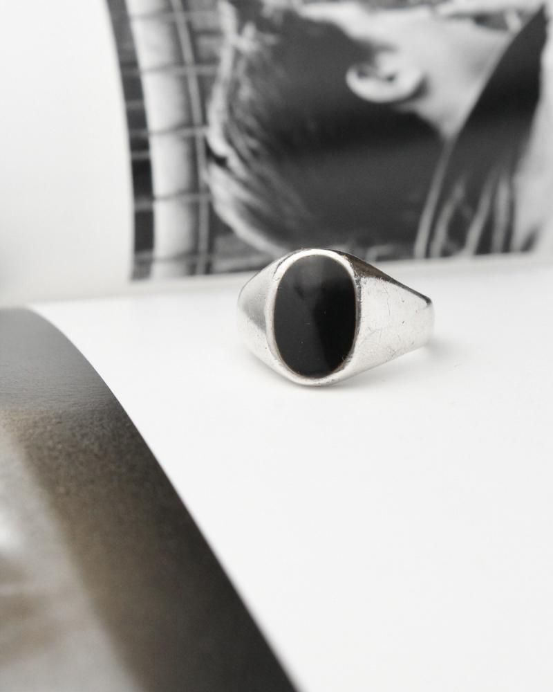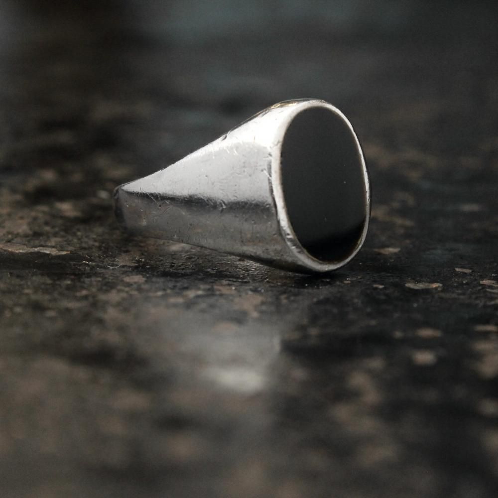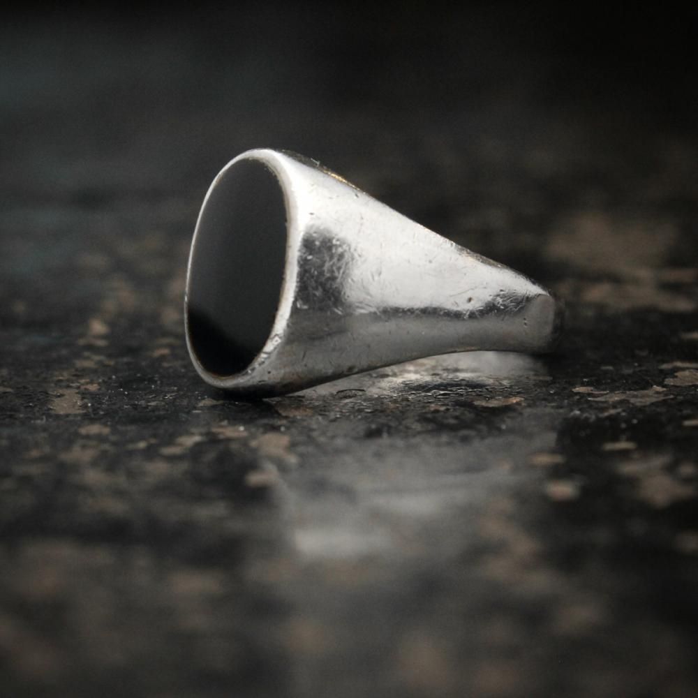 ヴィンテージ シグネット リング【STERLING × Onyx Round Top】US VINTAGE