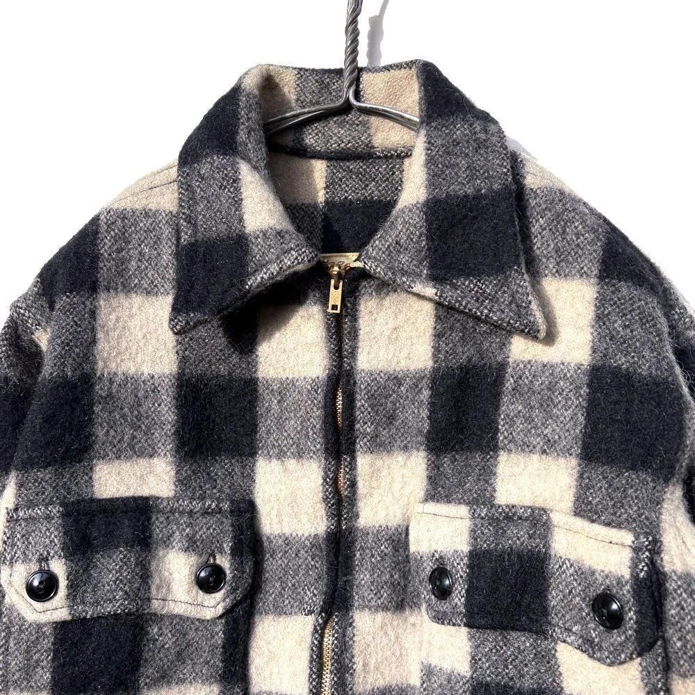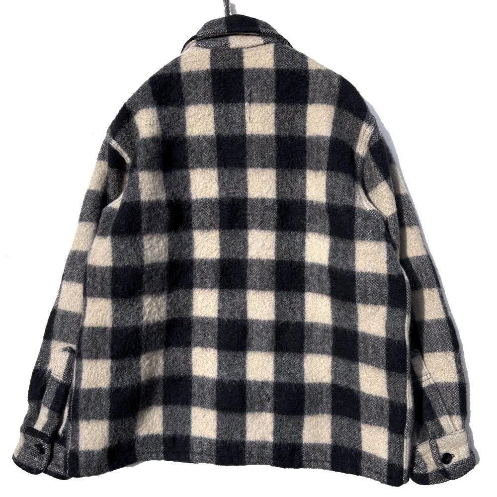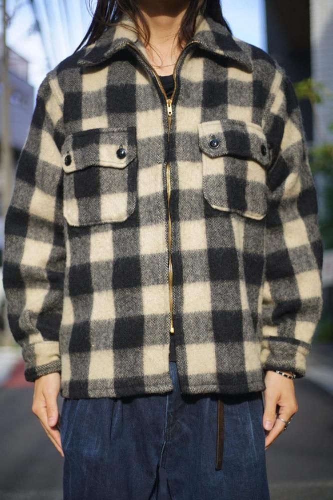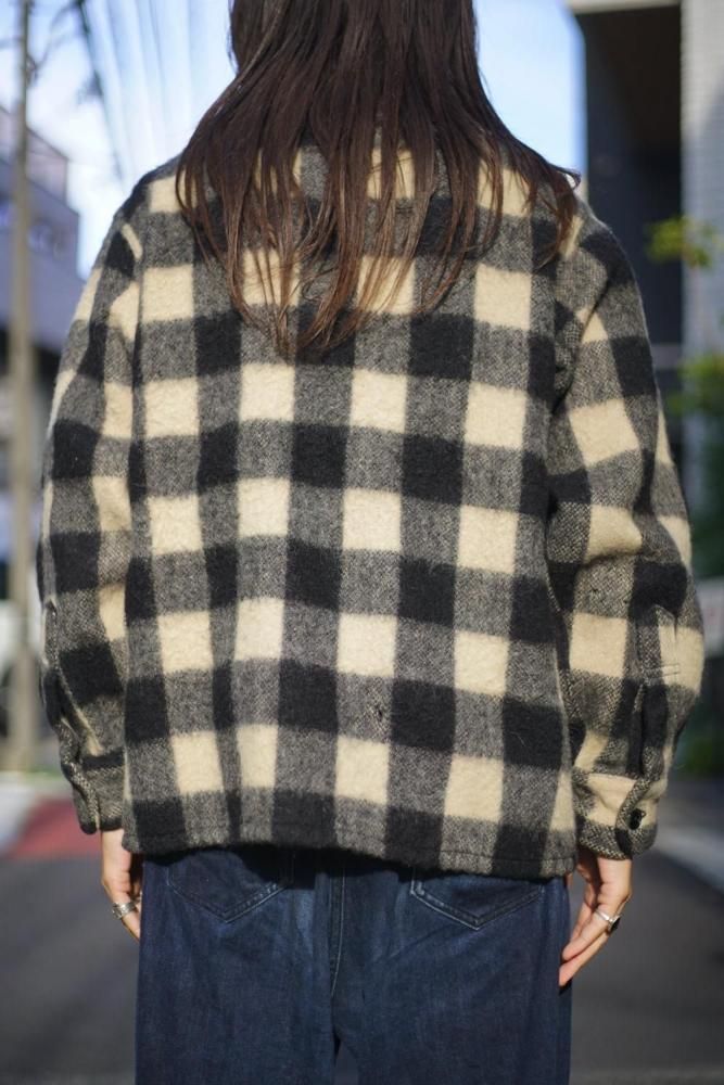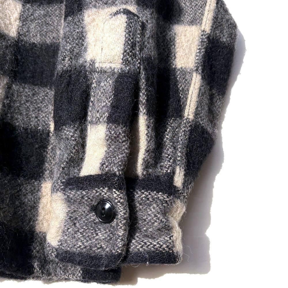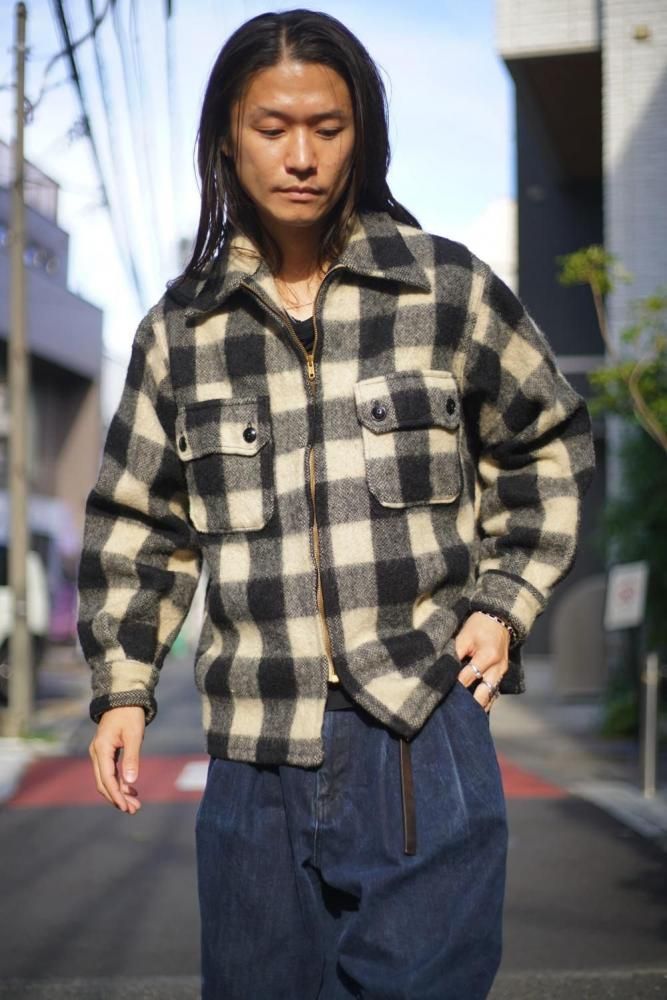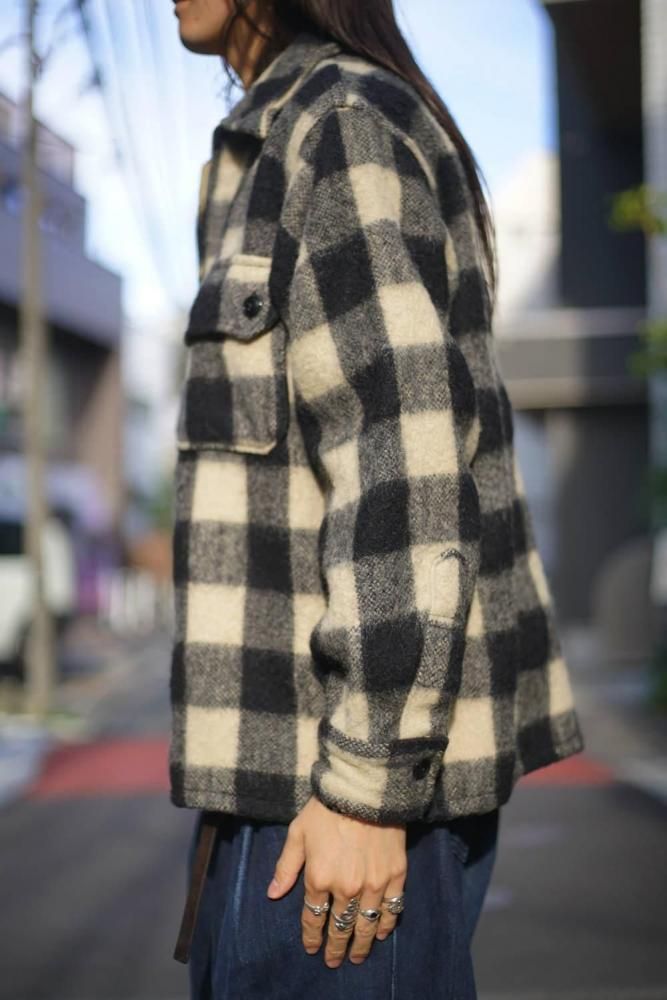 起毛感のある肉厚なウール生地が採用され、希少な白黒のバッファローチェックパターン、ヴィンテージらしい無骨なテキスタイルが雰囲気を高めます。