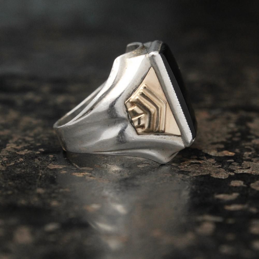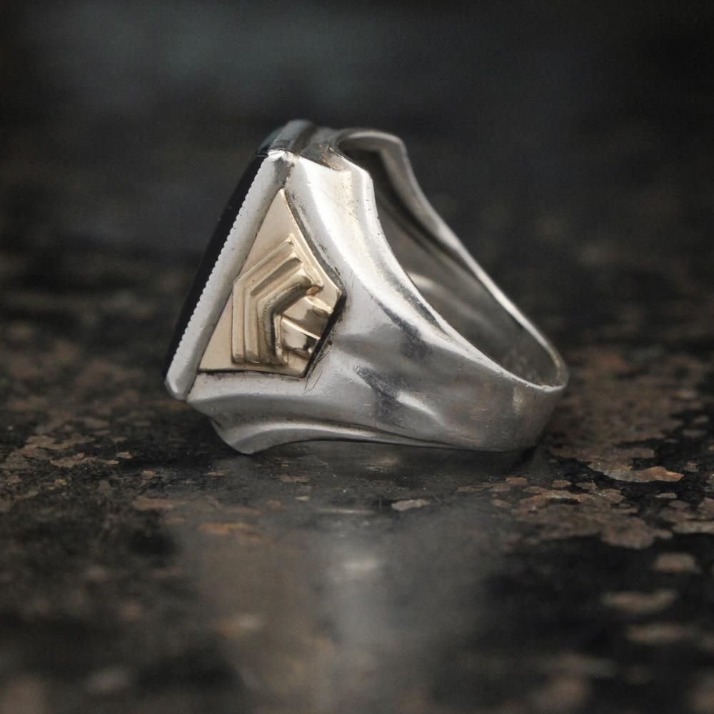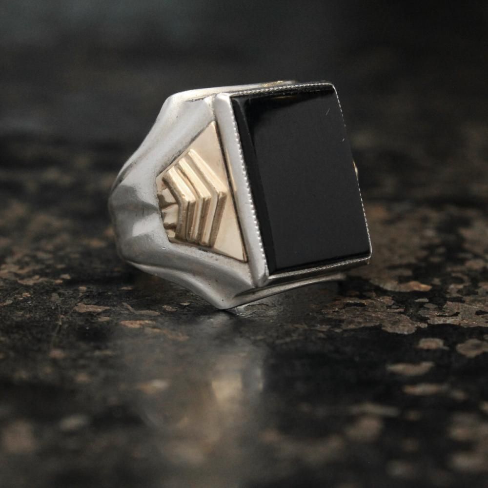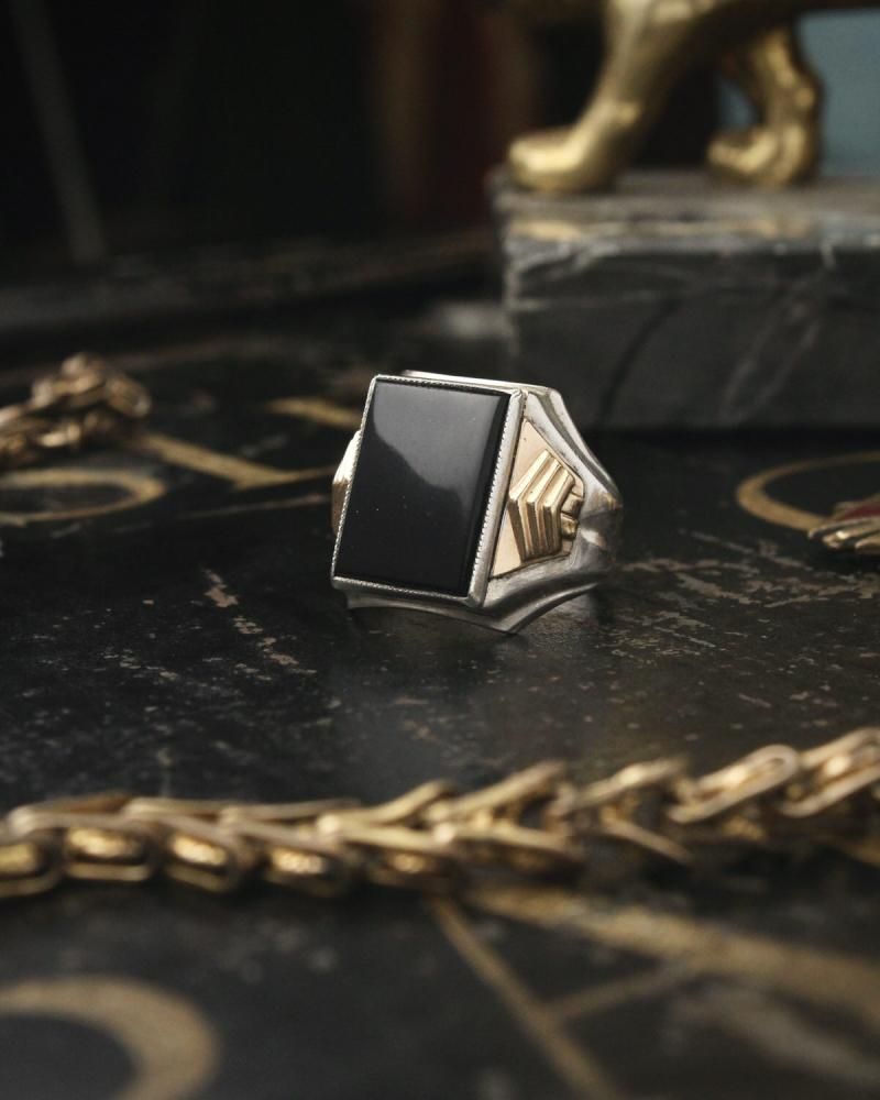 ヴィンテージ シグネット リング【Ostby Barton 1930's~】【STERLING × 10KGF × Onyx Square Top】