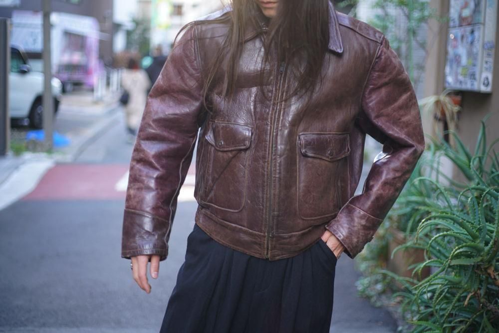 U.S.AIR FORCEの A-2フライトジャケットをモチーフに作られたジャケットで、ヴィンテージのホースハイドならではの味わい深いシボ感、深い陰影は特別なレザーならではの存在感を放ちます。