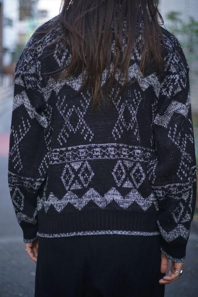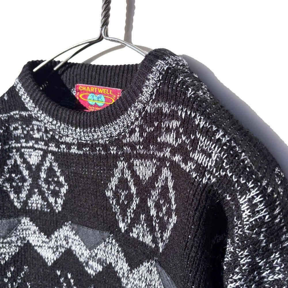【CHARTWELL】ヴィンテージ アブストラクトパターン レザー×ニット クルーネックニット【1990's-】Vintage Crewneck Knit