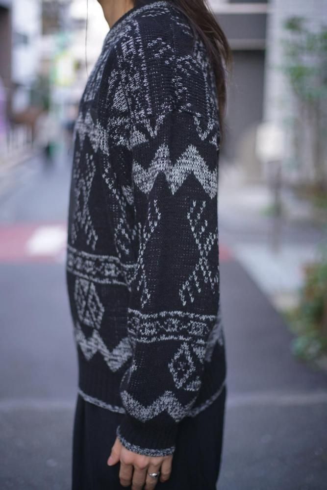 【EXPRESSIONS】ヴィンテージ アブストラクトパターン レザー×ニット クルーネックニット【1990's-】Vintage Crewneck Knit
