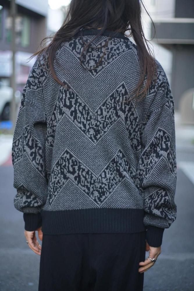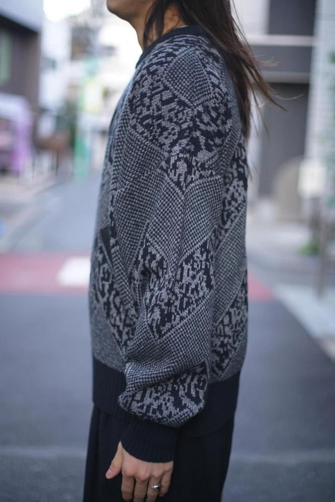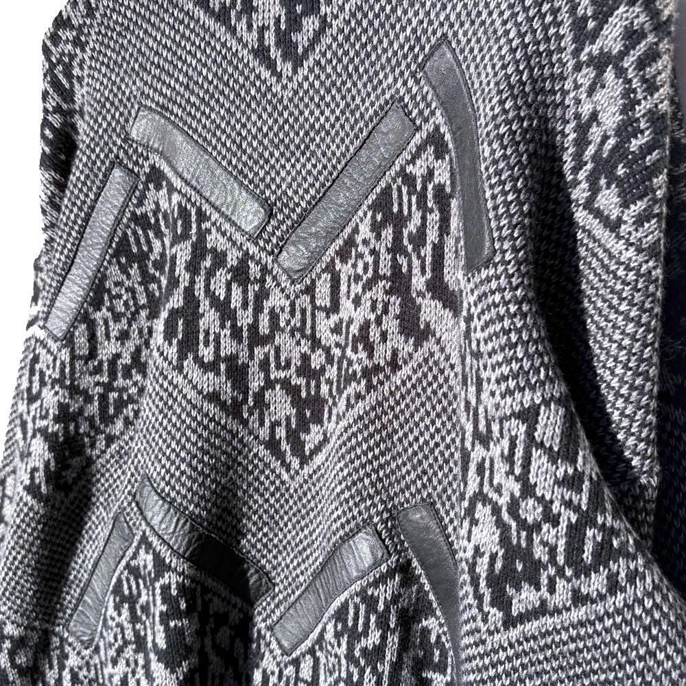 【EXPRESSIONS】ヴィンテージ アブストラクトパターン レザー×ニット クルーネックニット【1990's-】Vintage Crewneck Knit