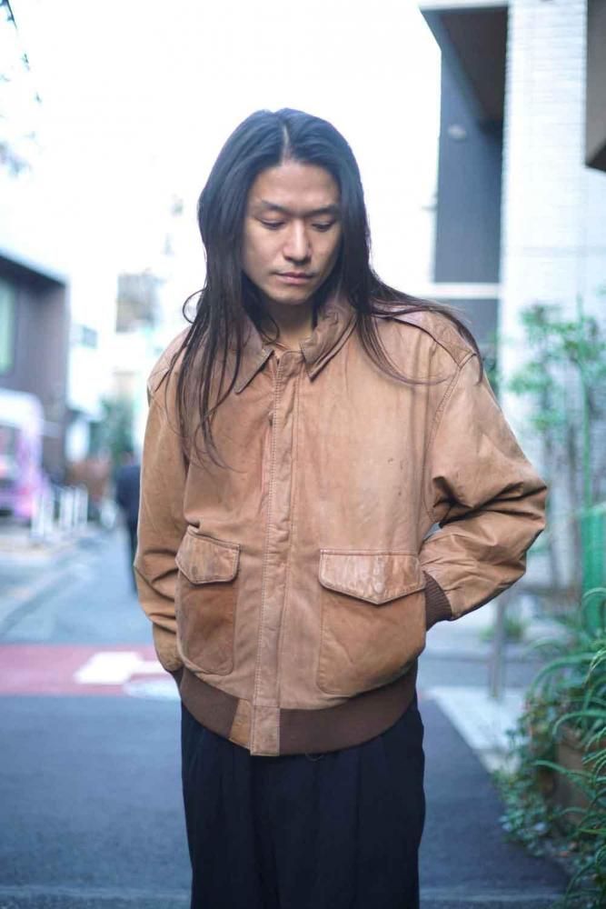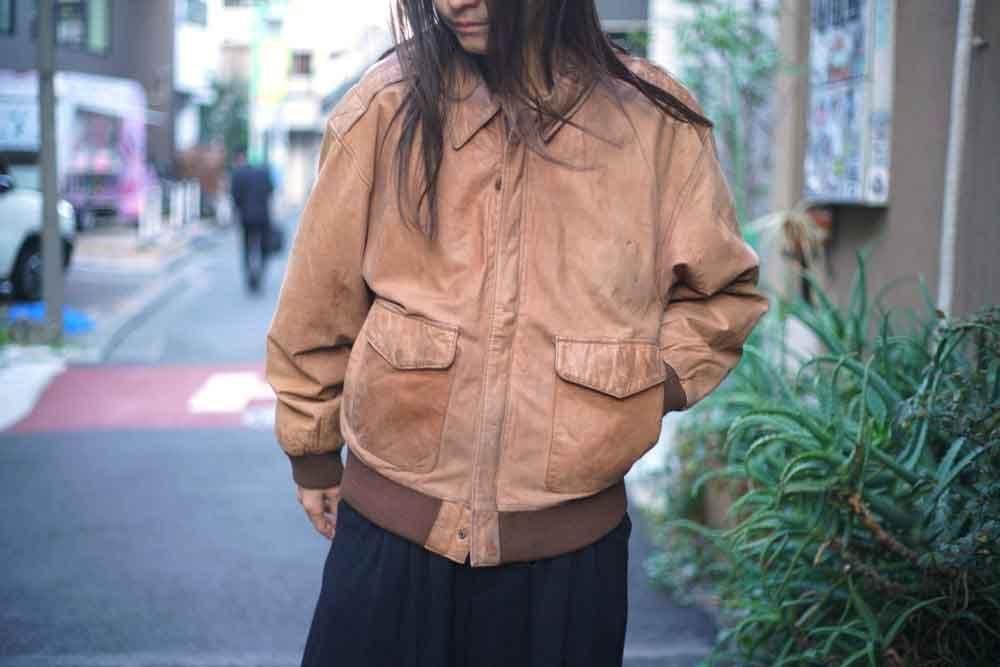 Mサイズの体のアウトラインに沿うように馴染み綺麗なシルエット、ミリタリーのA-2ジャケットとは一線を画する上品さが伺えるユーティリティ性の高い一着。