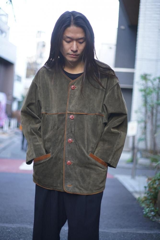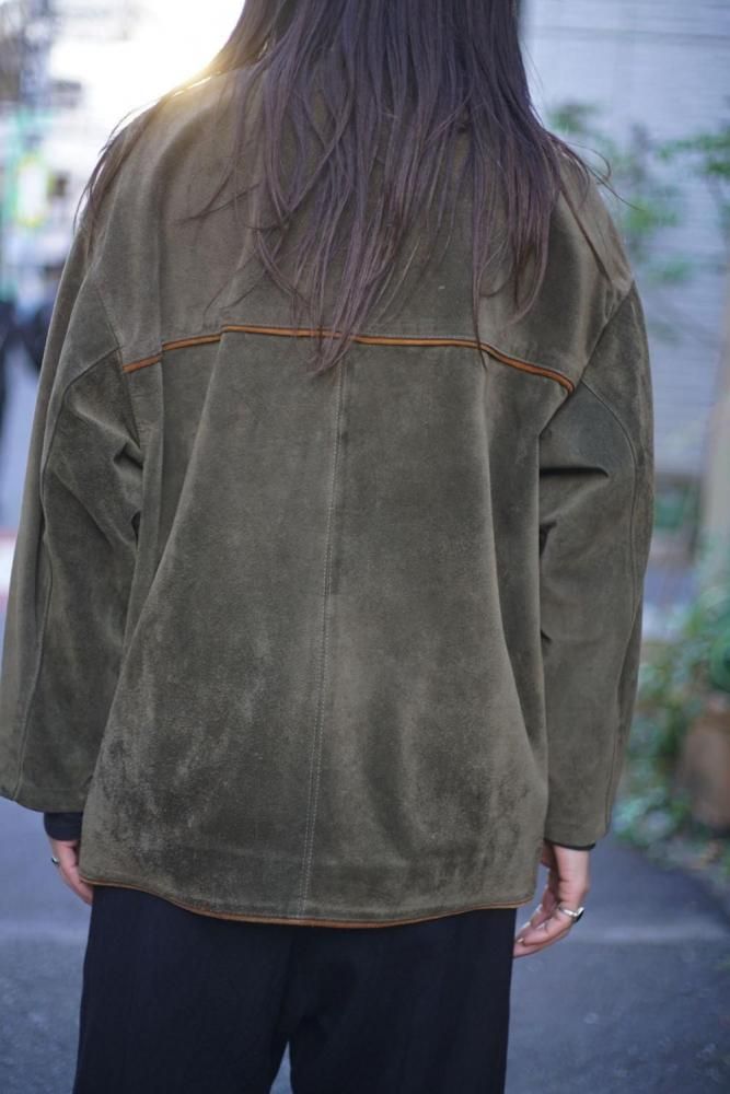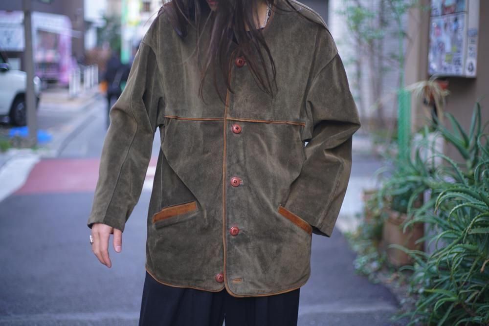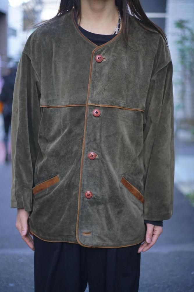 【FRONT Line】ヴィンテージ ノーカラー スエードレザージャケット【1980's-】Vintage Lether Jacket