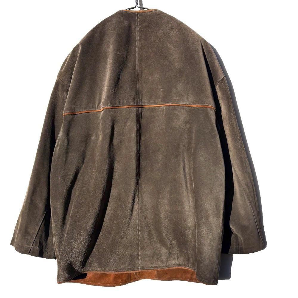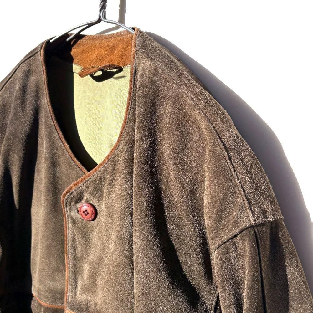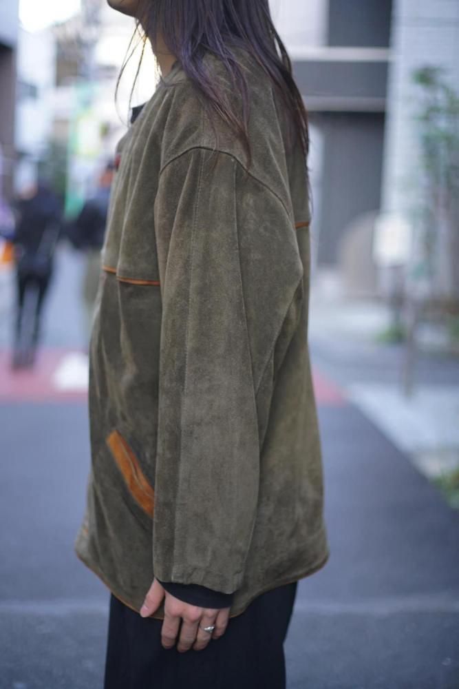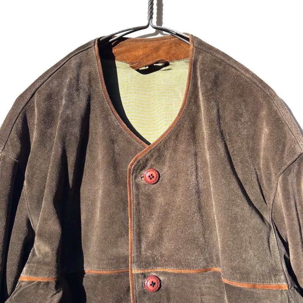 【FRONT Line】ヴィンテージ ノーカラー スエードレザージャケット【1980's-】Vintage Lether Jacket