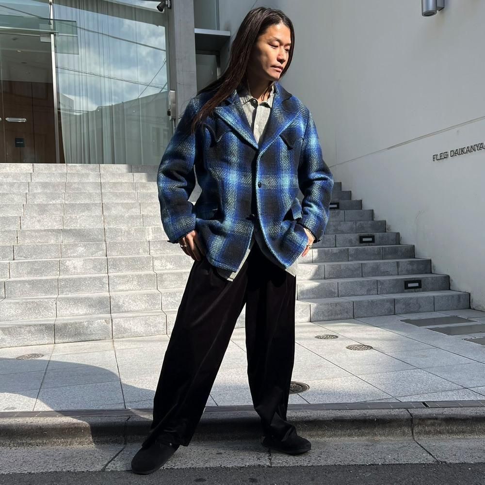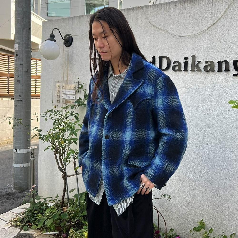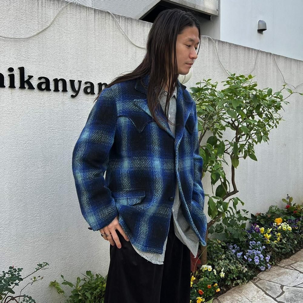 70年代のウェスタンジャケットbr> 色鮮やかなブルーのオンブレチェックにヨークのウエスタンデザインが雰囲気の良い1枚 ウール×コットンのふんわりと軽い生地感で羽織り心地の良い1着ですbr> 身幅に程よくゆとりがあるグッドシルエットなヴィンテージジャケット